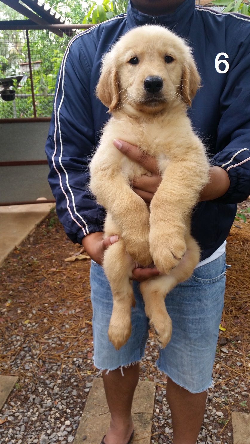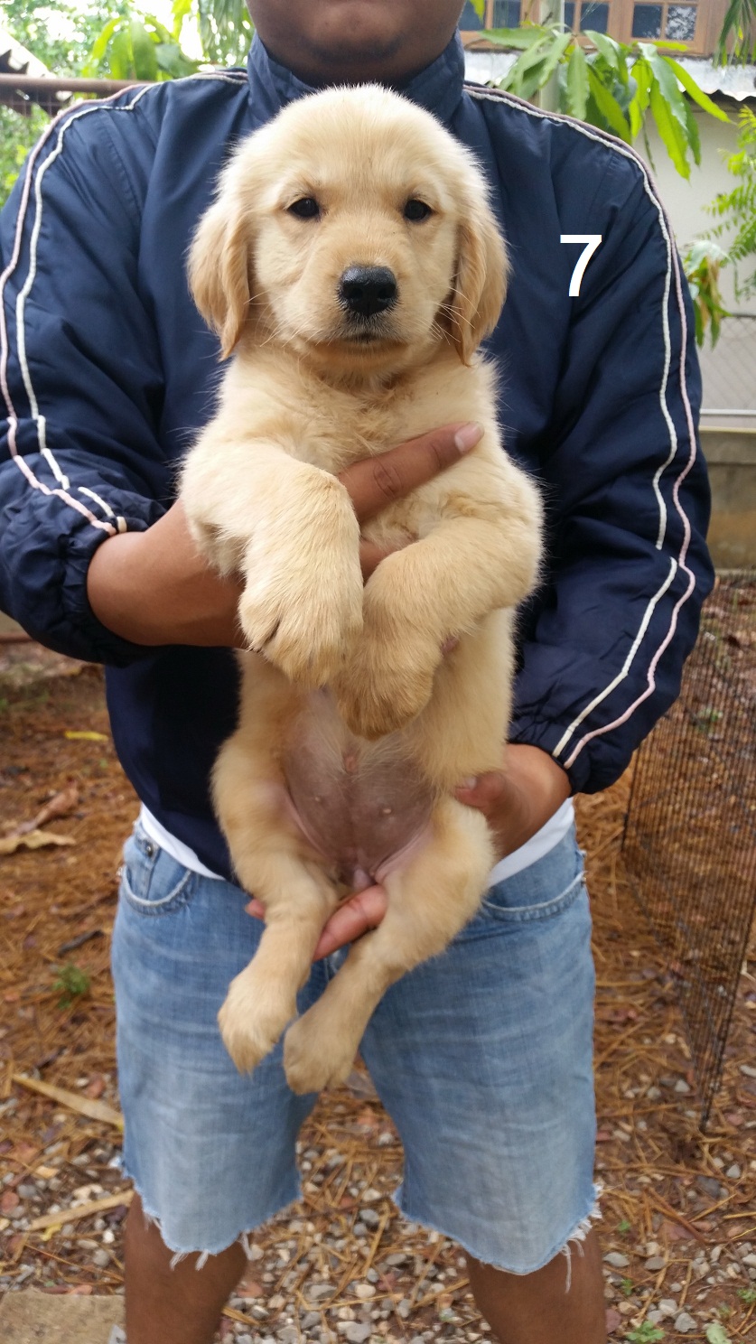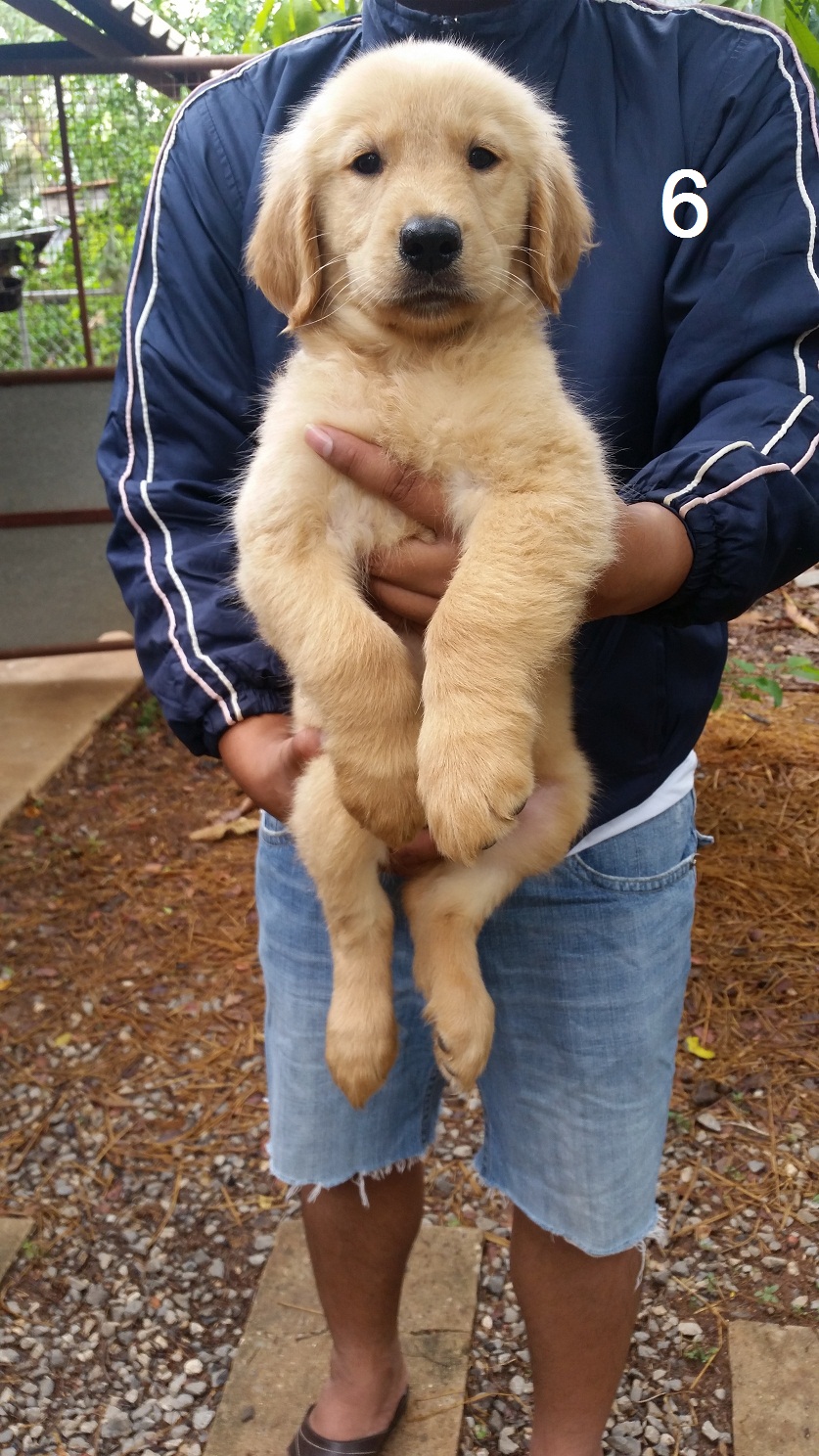 โกลเด้นท์พร้อมย้ายบ้านครับ คอกนี้มี 7 ตัว ตัวผู้ 4 ตัว ตัวเมีย 3 ตัว เกิด 30 มีนาคม 2559 ฉีดวัคซีนเข็มแรกแล้ว ส่งฟรีถึงมือเช่นเคยครับ (ฟรีถึง กทม. แถวๆ ม.เกษตรศาสตร์บางเขน) ค่าตัว 5,000-5,500 บาทครับ