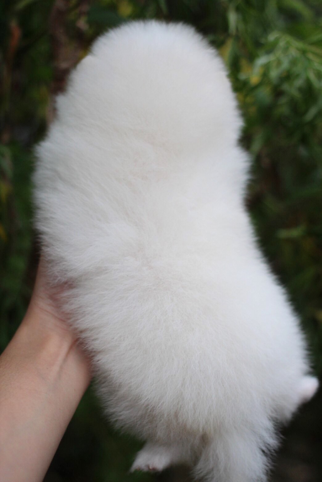 ปอมเมอเรเนี่ยน สีขาวสำลี เพศเมีย ขนแน่น มีใบเพ็ดดีกรี