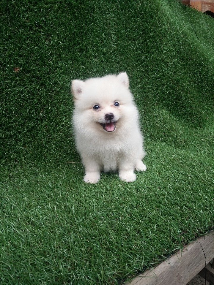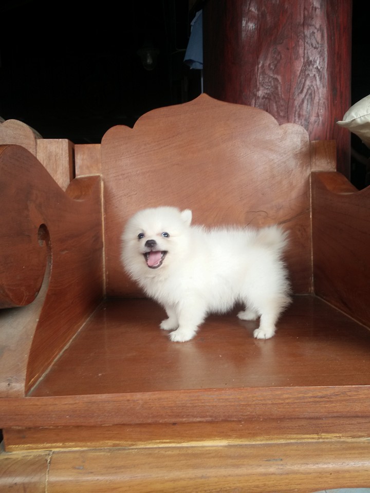 ปอมเพศเมีย สีขาวครีม ฟอร์มเลี้ยงเล่นไซต์มาตราฐาน เกิด 30 มีนาคม 2559 แข็งแรงทานอาหารเองได้แล้ว ฉีดวัคซีนแล้ว พร้อมย้ายบ้าน ลูกค้าที่อยู่ลำปางหรือจังหวัดใกล้เคียงมาดูเด็กๆได้ที่บ้านข้างเซนทรัลลำปางทางเรามีบริการจัดส่งและส่งทางเครื่องบิน