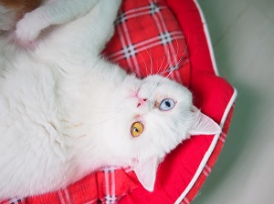 สีขาวล้วน ตาสองสี ขนแน่น
