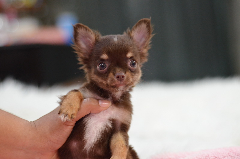 ★^-^*★ WWW.WOWWCHIHUAHUA.COM★^-^*★.. "น้องดีดี้" เพศเมียขนยาวสีชอคแทน มาร์กกิ้งน่ารัก หัวกลมสวย