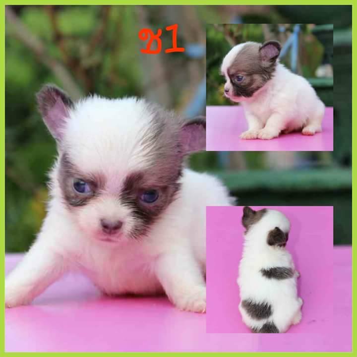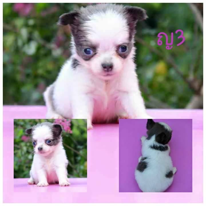 ขายน้องหมาพันธุ์ชิวาวาขนยาวสีแฟนซีขาวบลู สีสวยเวอร์ สีแปลก หายาก น่ารัก ปลอดโรค ผู้2 เมีย2 ไซส์เล็ก
