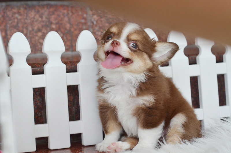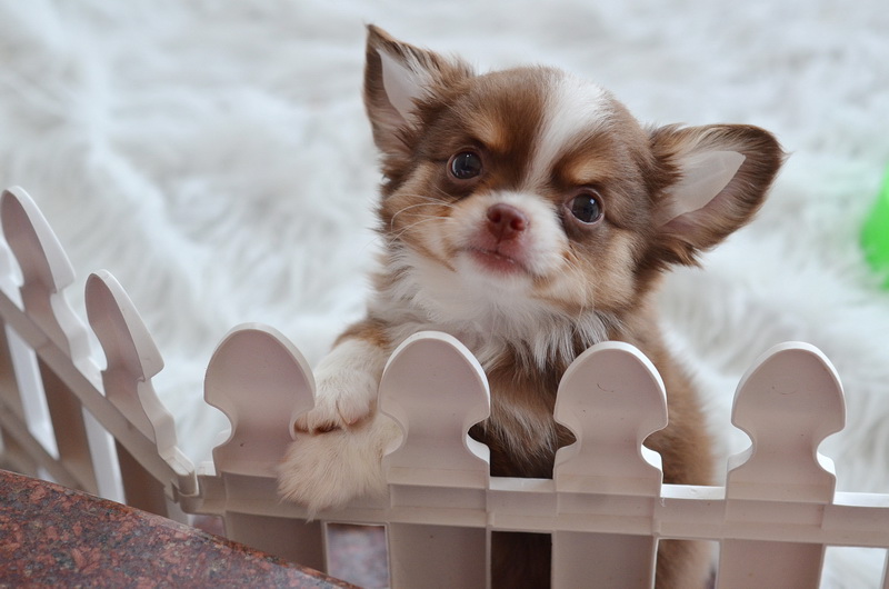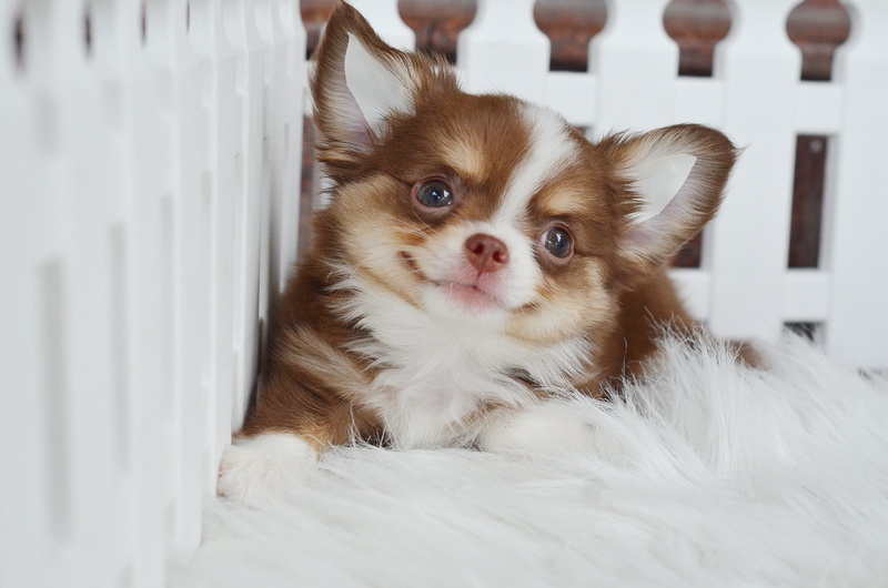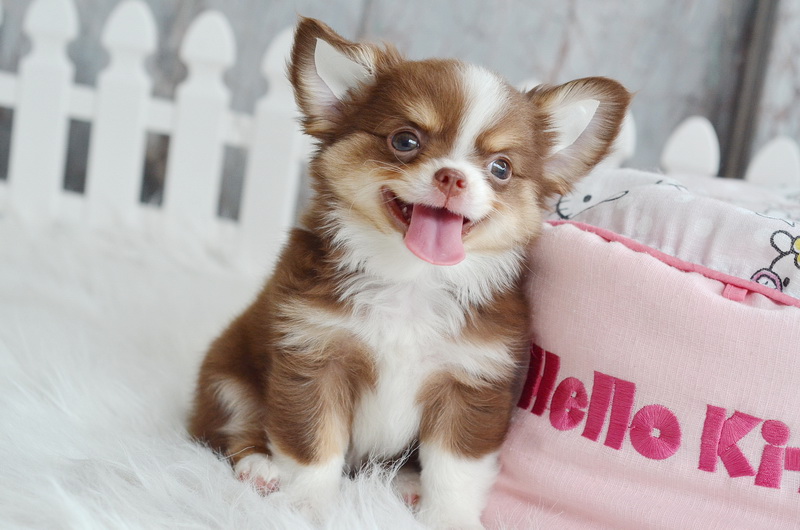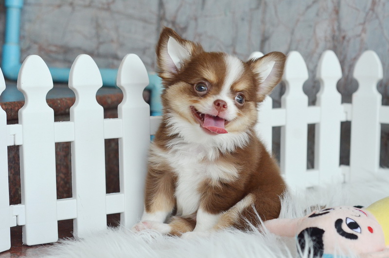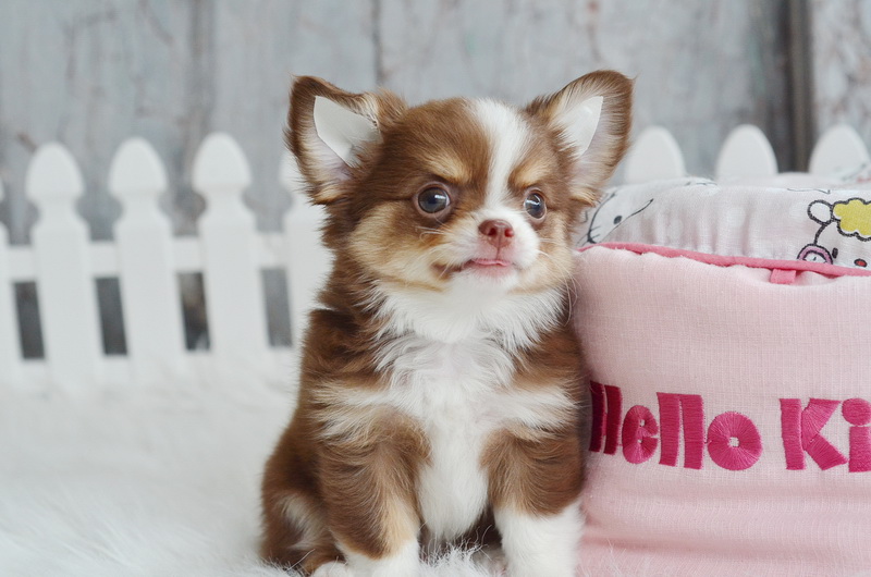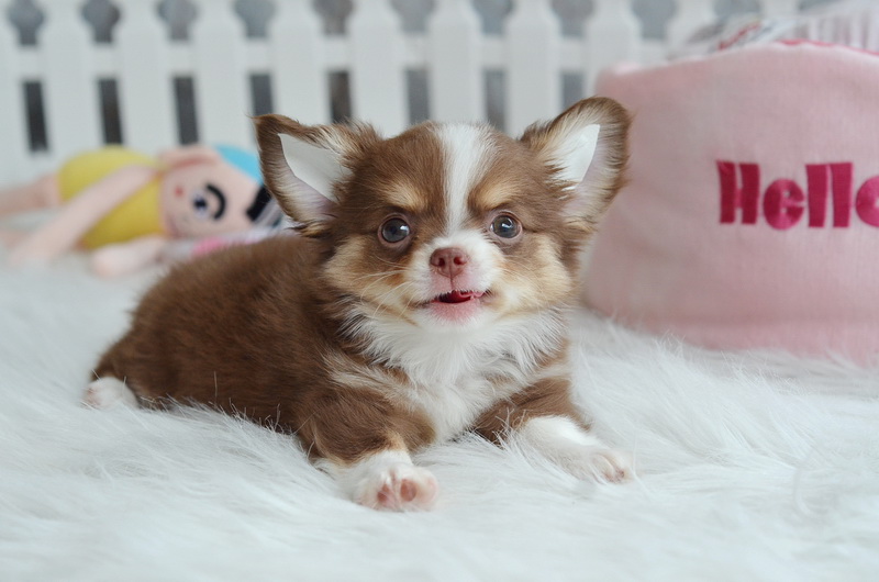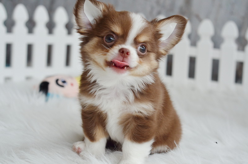 13500 ชิวาวาขนยาวสีชอคโกแลตแทนไวท์มาร์กกิ้ง หน้าหล่อคมเข้ม น่ารักมาก วัคซีนแล้ว 1 เข็ม