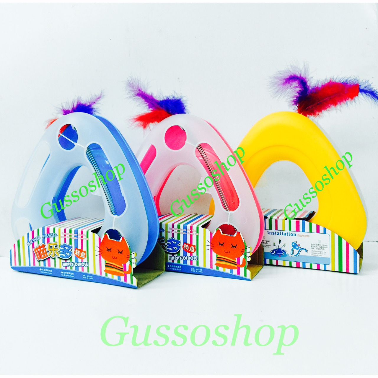 ของเล่นสำหรับน้องแมวเหมี่ยว วางไว้ที่มี จะมีขนหลากสี และลูกบอลมีเสียงสำหรับน้องเหมี่ยว ตัวขนหลากสีติดกับเสาสปริงเด้งไปมาได้คะ