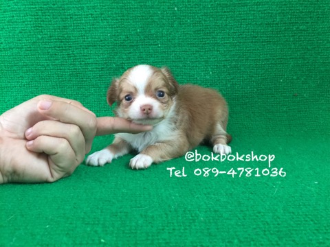 ชิวาวาเพศเมียสีช็อค ขนยาว ไซส์ tcup พร้อมย้ายบ้านค่ะ 089-4781036 id kaki6830