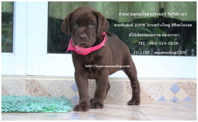 ลาบราดอร์ สีช็อคโกแลต..สีสวย..สีเก๋..สียอดนิยม..เพศเมีย..หัวใหญ่ ปากใหญ่ ปากย้อยๆ ขาใหญ่ อ้วนๆ อวบๆ..ฉลาด แสนรู้..เรียนรู้เร็ว ฝึกง่าย..เฝ้าบ้านได้ หาของได้ หาระเบิดได้..เป็นเพื่อนเล่น อยู่กับผู้สูงอายุได้ ช่วยคลายเหงา