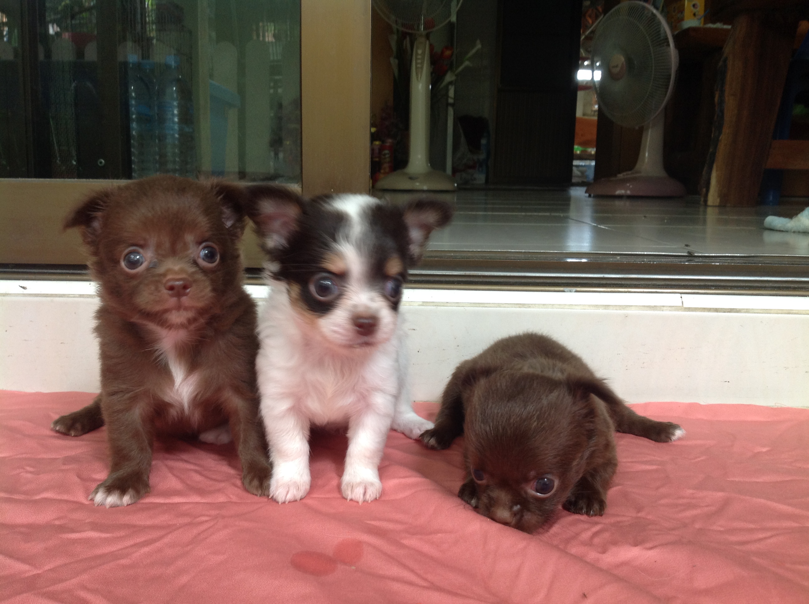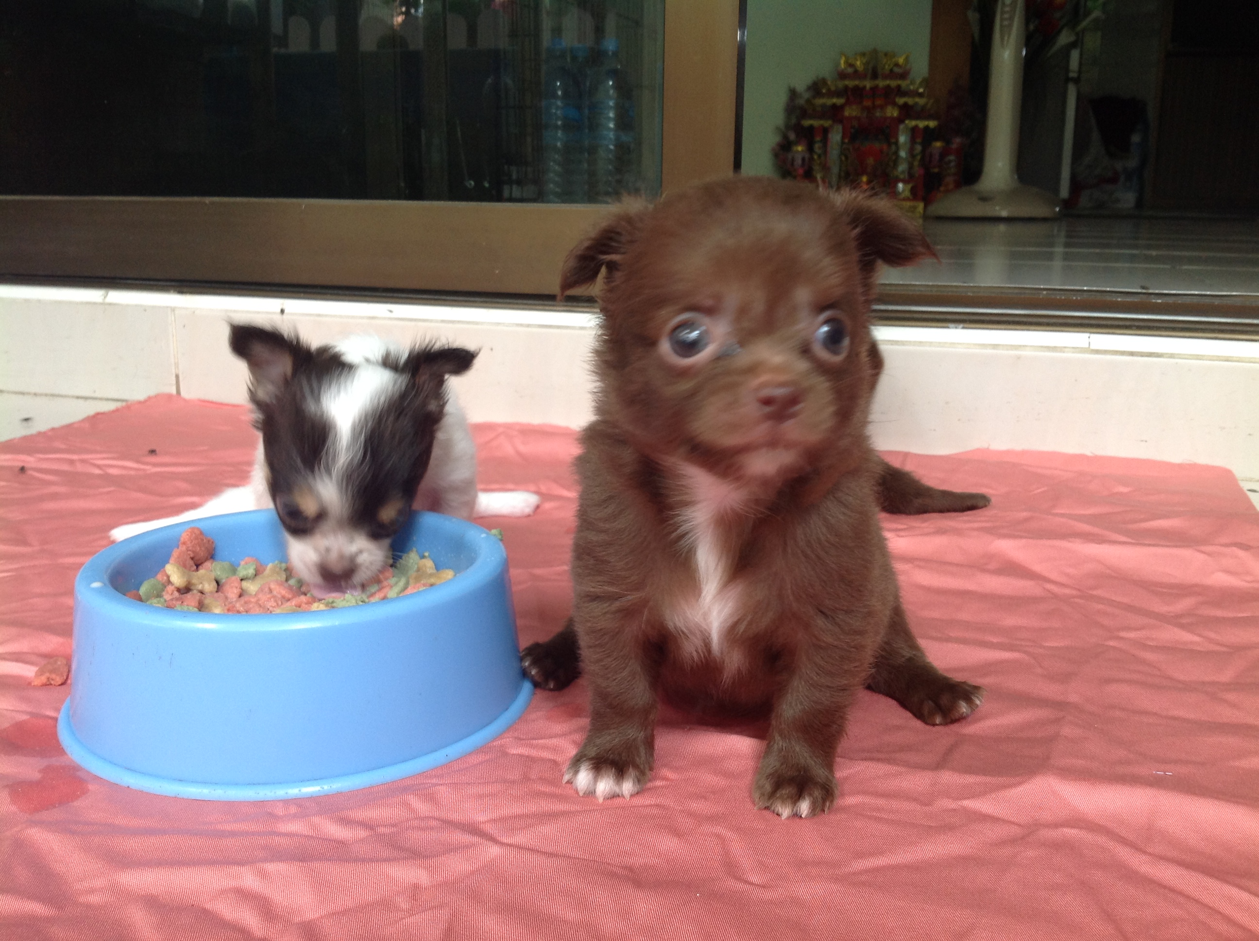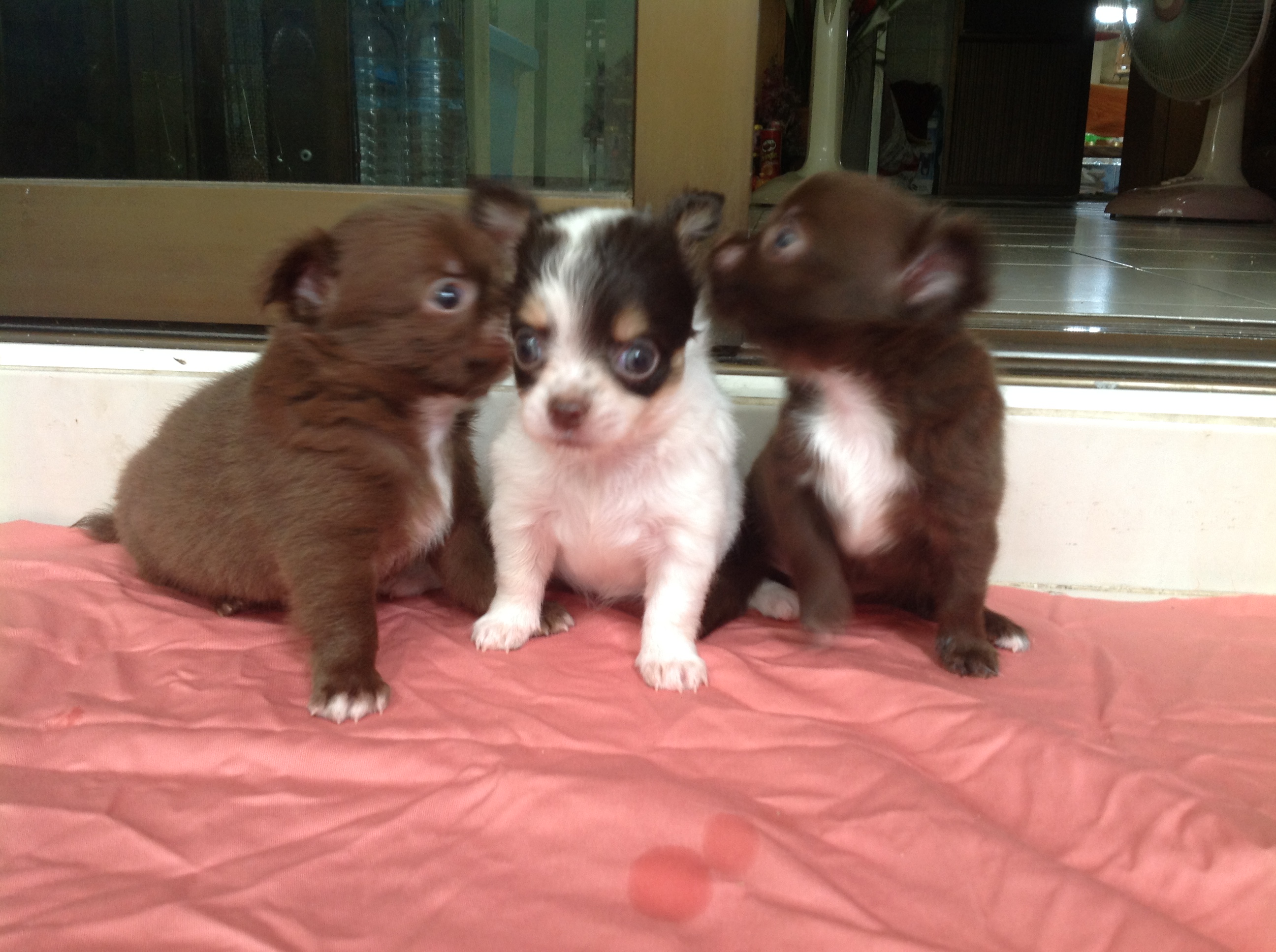 ชิวาวาขนยาว สีช็อค และสีขาวช็อคมีคิ้ว เพศผู้ เมีย