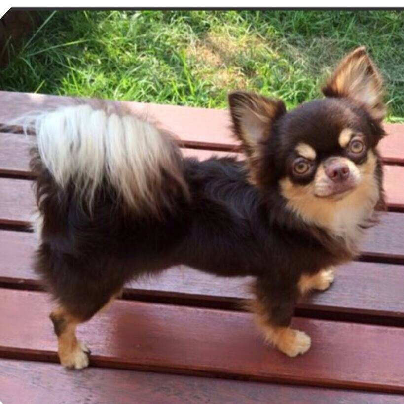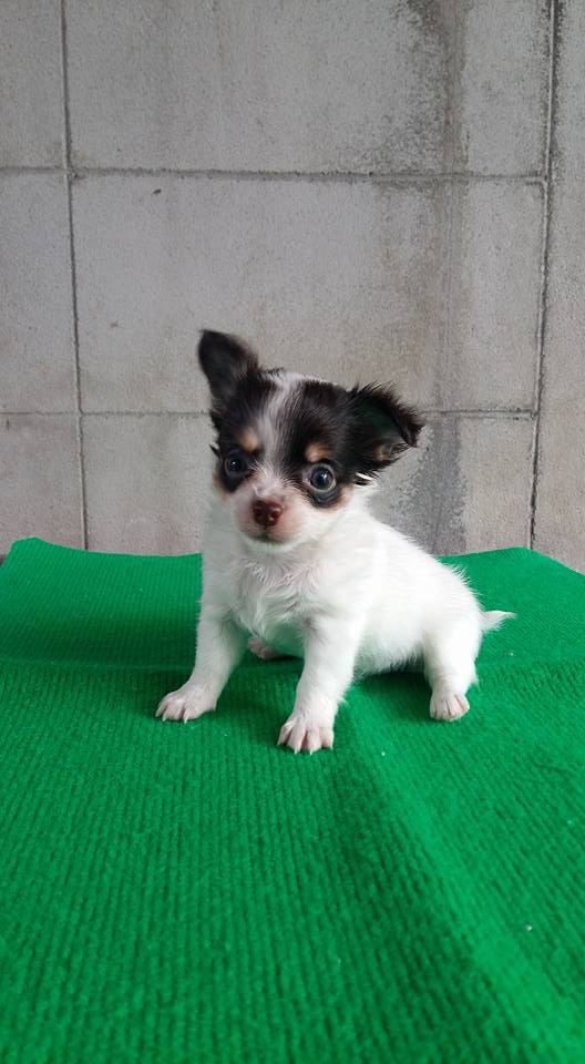 ขายลูกชิวาวาขนยาวตัวเมียสามสีขาวน้ำตาลซ็อก 1 ตัวครับ