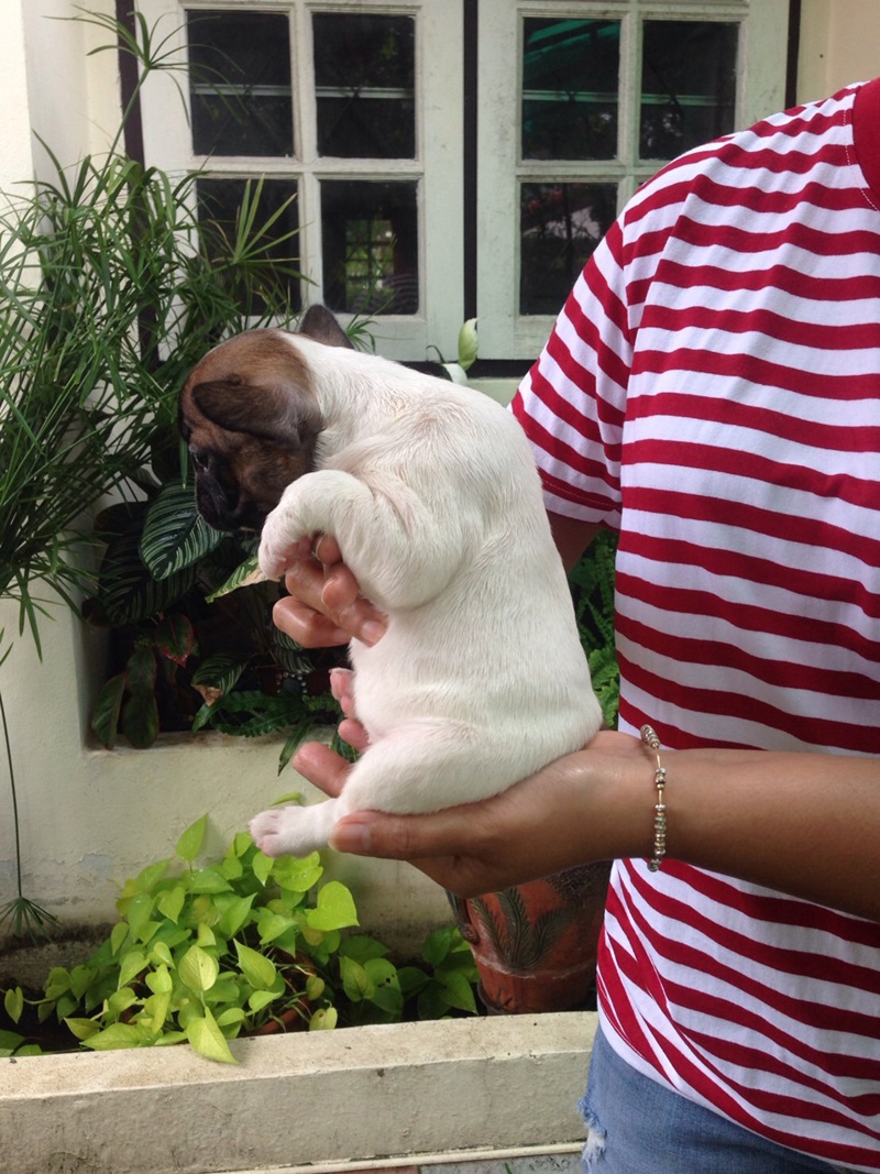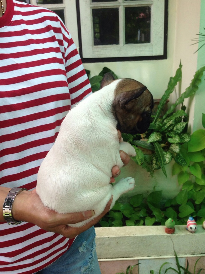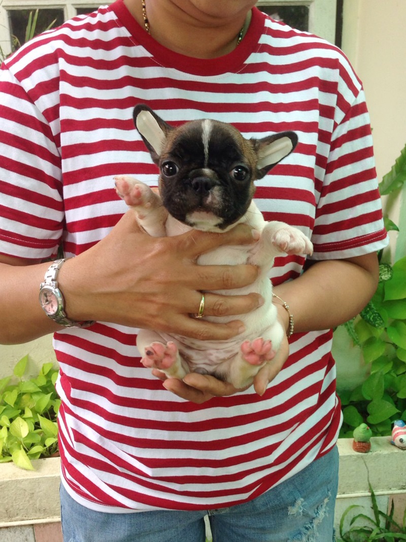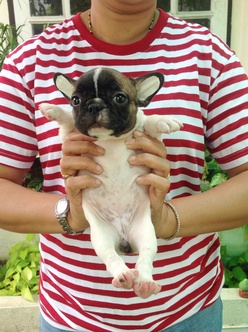 น้องกัสจัง เฟรนซ์ บูลด็อก เกรดสวย เพศเมีย สีขาวดำน้ำตาล เพ็ดดิกรีเต็มใบ พร้อมย้ายบ้าน