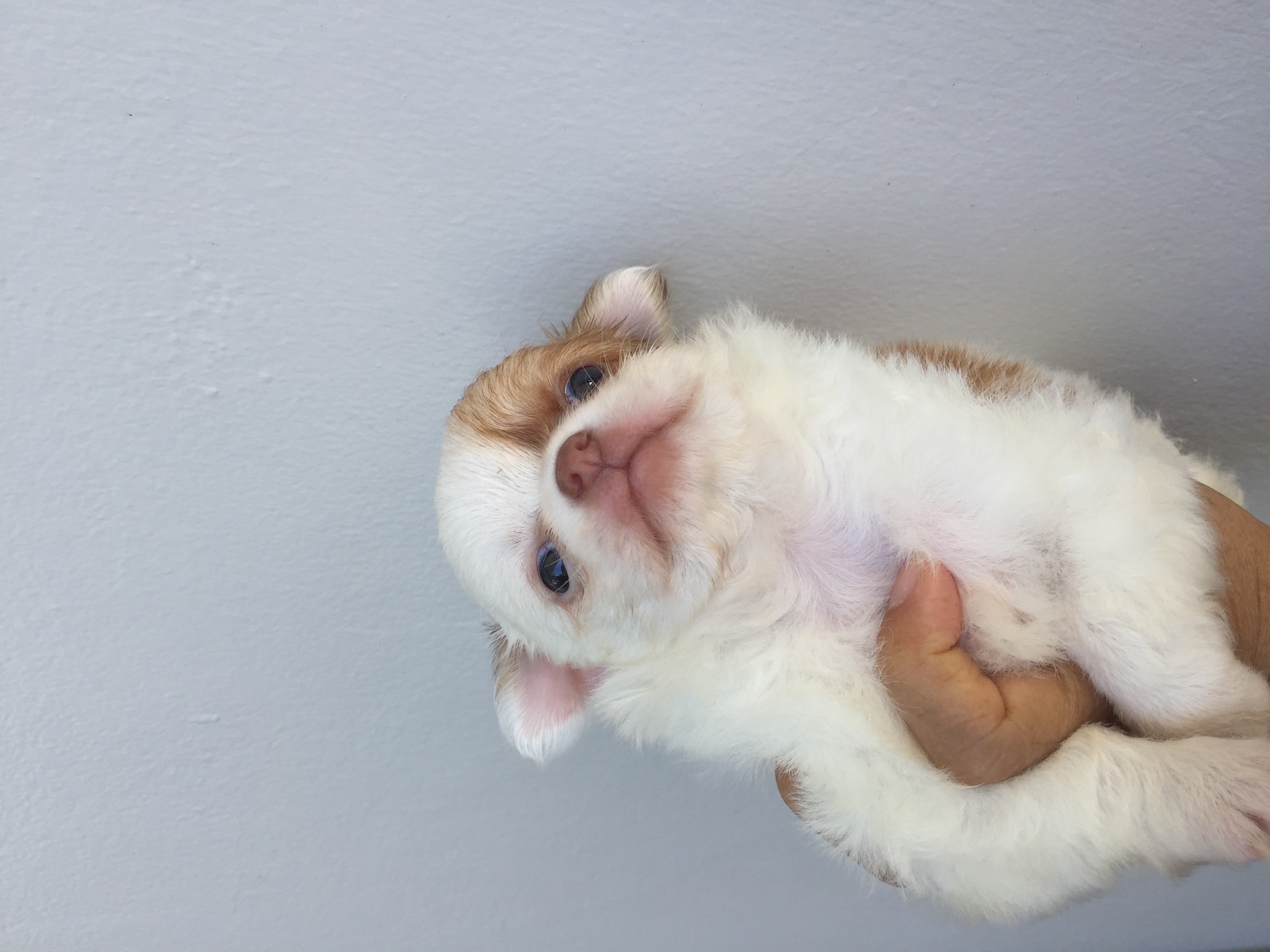 ชิวาวาขนยาว หญิง ขาวช้อก ขนสวยมากกกก หน้าสั้นปากอูม ปลอดโรค 100%