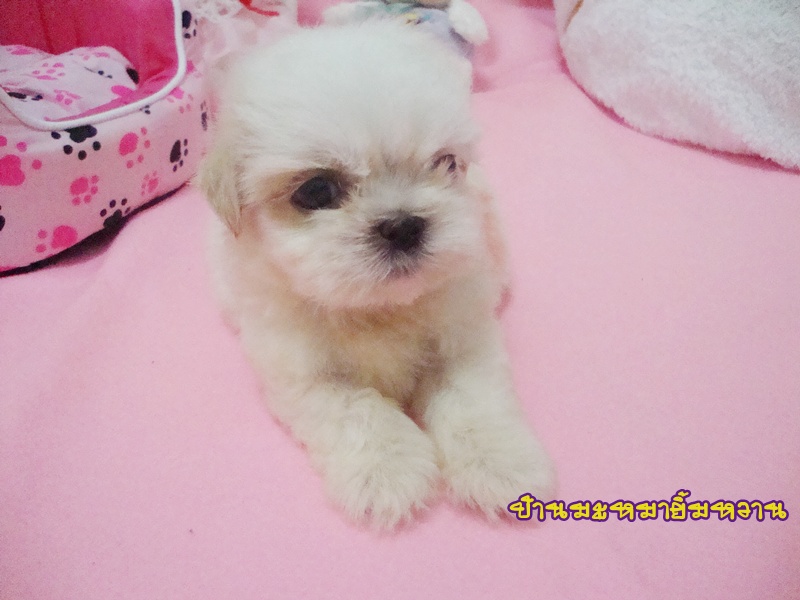 ชิสุห์ุแท้ เพศผู้ สีขาวครีม น่ารัก ขนแน่น