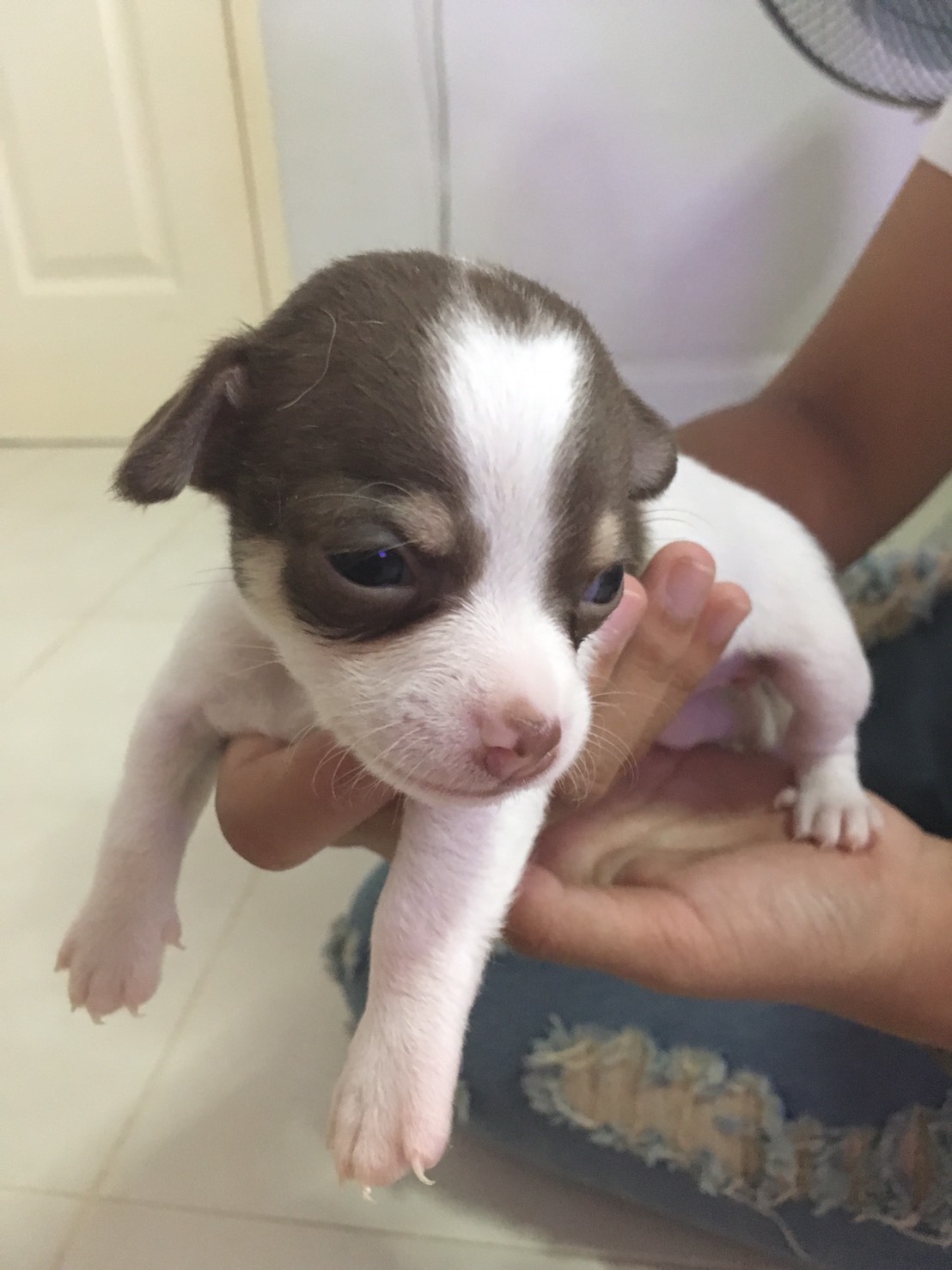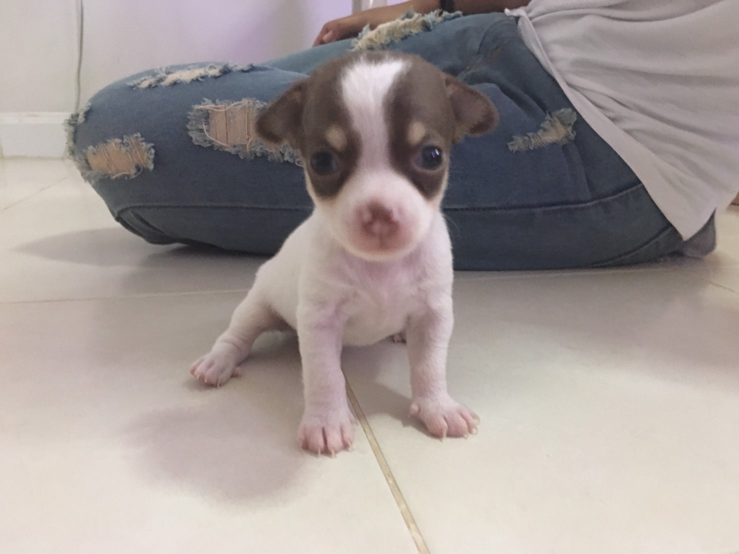 thanks chihuahua for sale ชิวาวาเพศเมีย สีขาวช็อค สายพันธ์ุดี ขนสั้นอายุ 2 เดือน