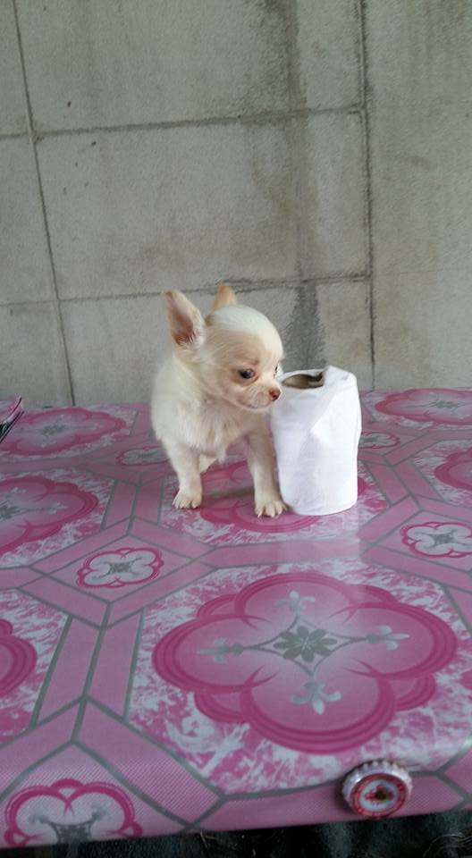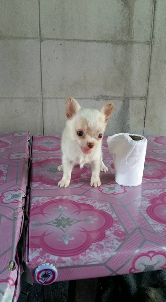ขายลูกชิวาวาขนยาวตัวเมียสีขาวครืม 1 ตัวลูกหมาที่บ้านเลิ้ยงเองครับ