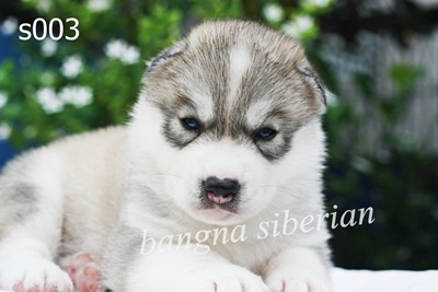 พ่อพันธุ์จาก ฺBangna siberian จุดเด่น มีกระโหลกใหญ่ ปากสั้น สูงเต็มไซร์ ความสวยงามที่ชัดเจนสายเลือดดีสาย Am.ch. มาตราฐานสายพันธ์ไซบีเรียนแท้ๆ ซึ่งเป็นพ่อพันธุ์ที่มีคุณภาพแน่นอน เพราะเกิดจากพ่อแม่พันธุ์ที่มีสายเลือดดีเยี่ยม