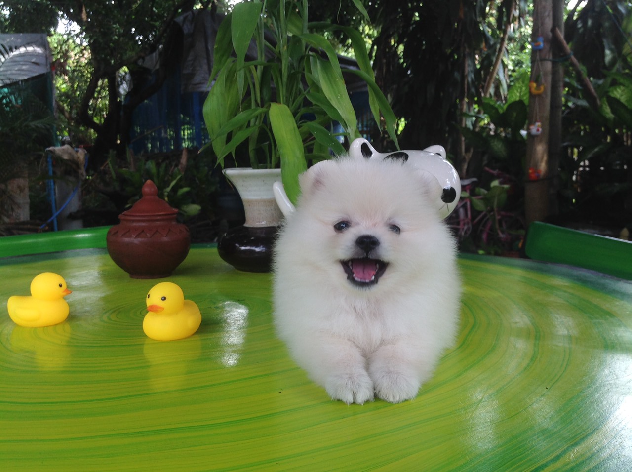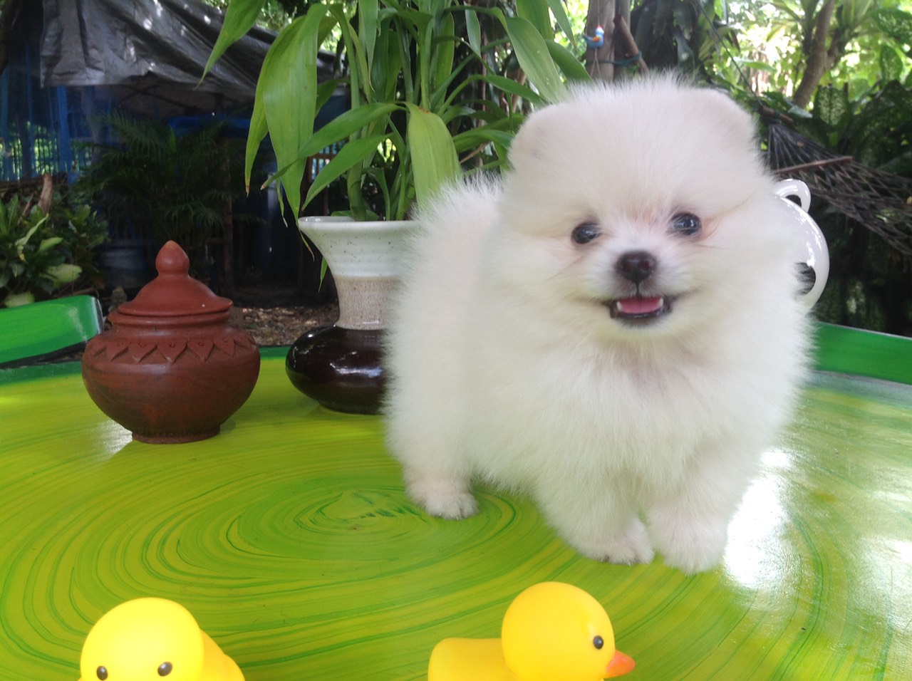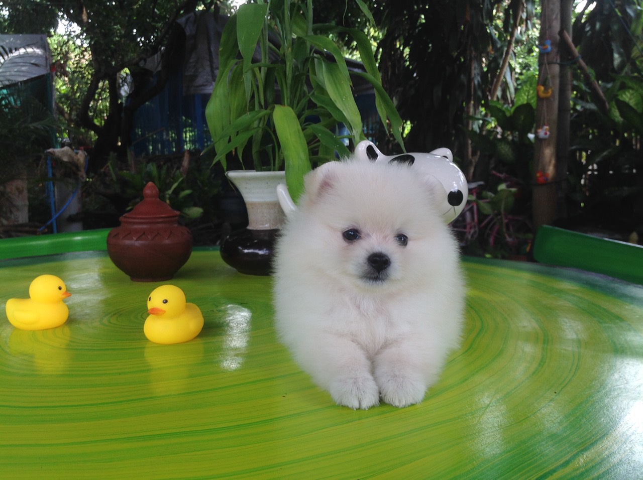ลูกสุนัขปอมเมอเรเนียนแท้100% สีขาวสำลี ขนแน่นฟู เพศเมีย นิสัยร่าเริง เพศเมีย