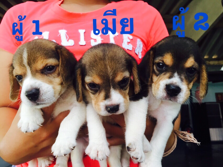 ขาย บีเกิ้ล 3 สี เพศผู้ 2 เมีย 1 ไซค์เล็ก น่ารัก เตี้ยสั้น ทรงสวย อายุ 32 วัน ราคา 5900 บาท