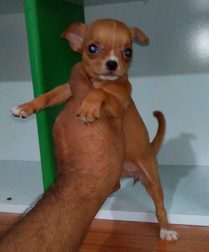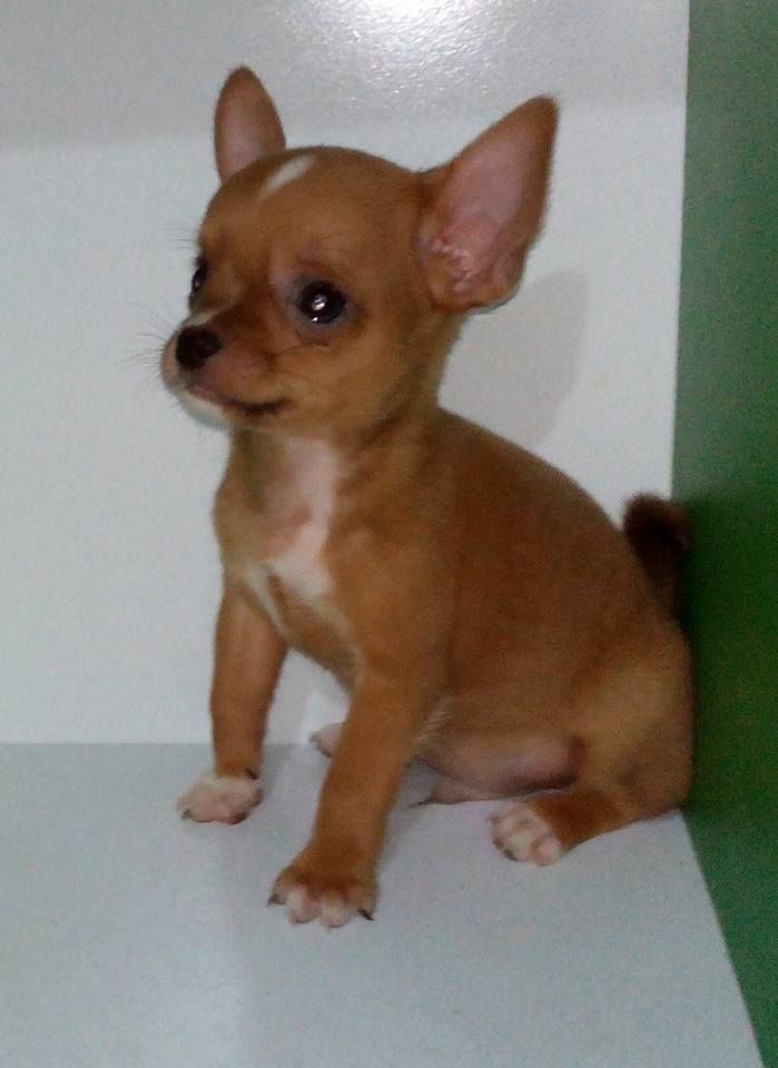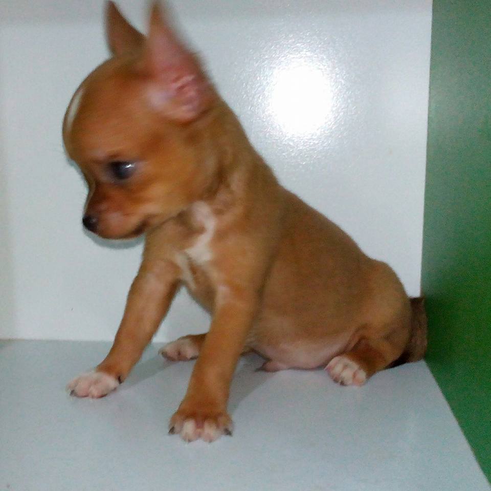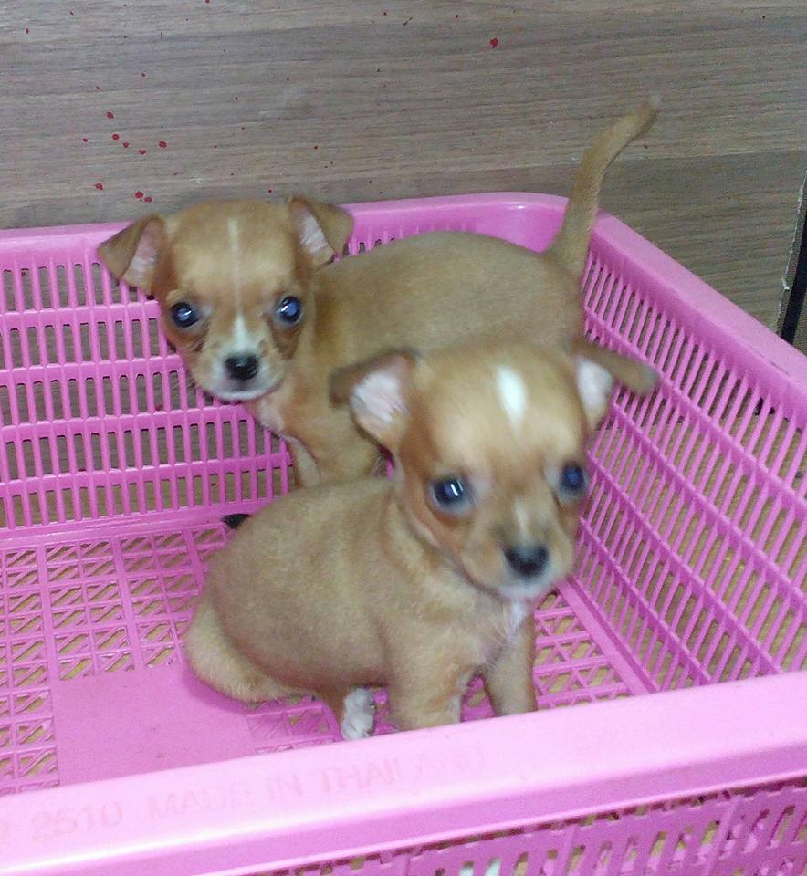 ลูกชิวาวาขนสั้นสีนำ้ตาลผู้1เมีย1อายุเดือนกว่าหัวโตสีสวยตัวละ2900