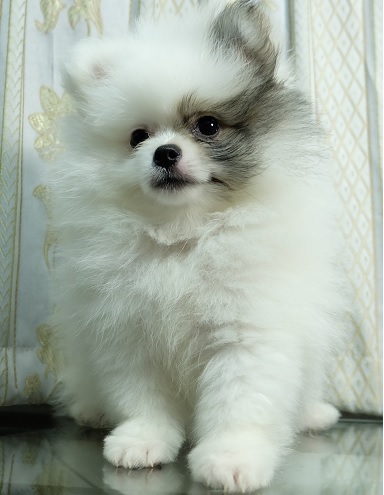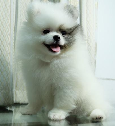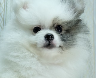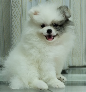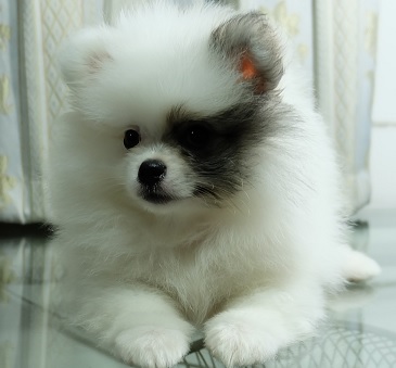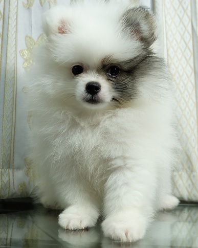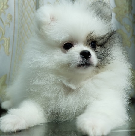 ลูกสุนัขปอมเมอเรเนี่ยนสีขาวปาร์ตี้ เพศผู้อายุ 80 วัน