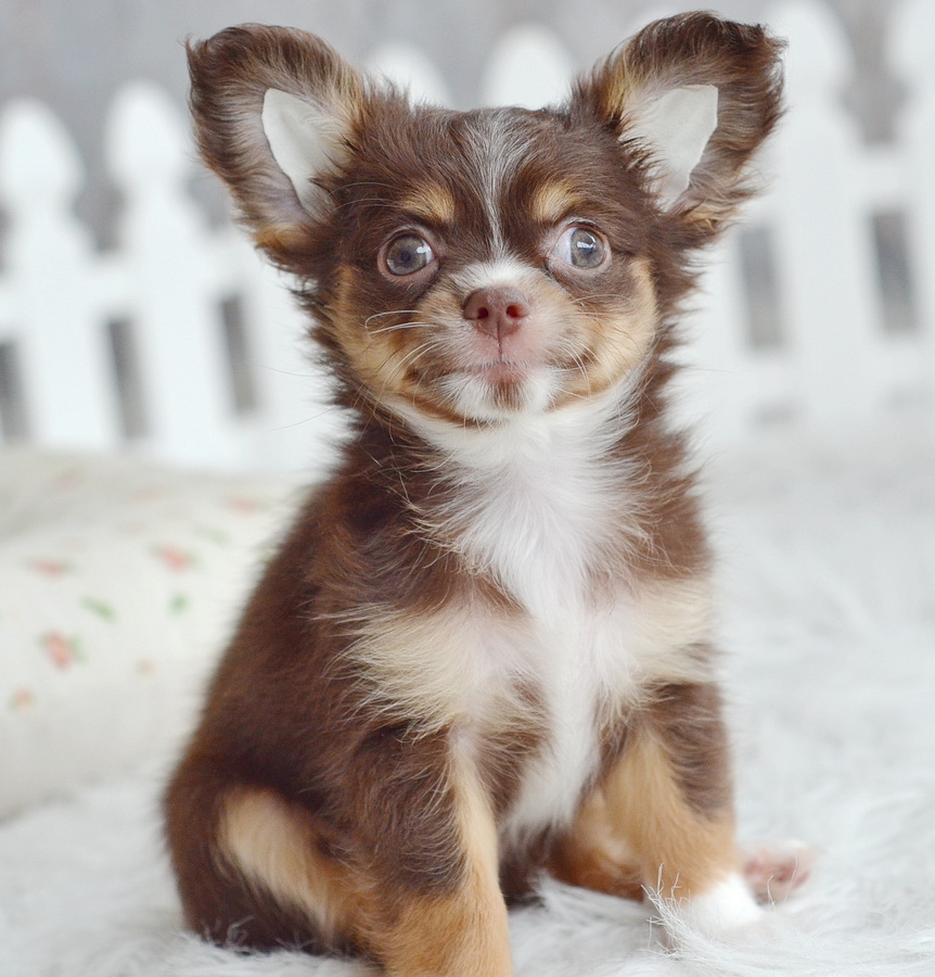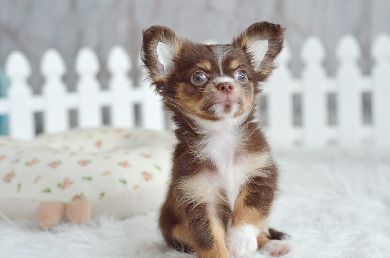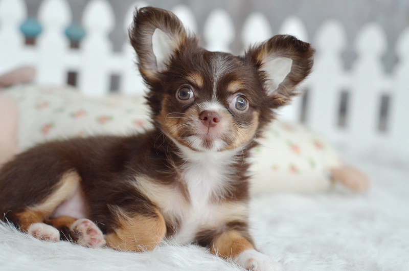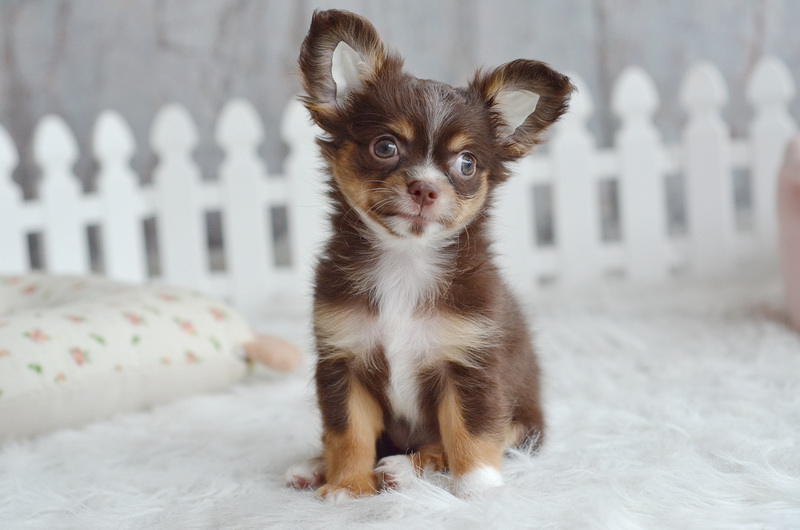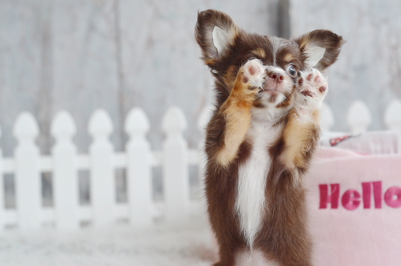 ชิวาวาเพศเมียขนยาวสีชอคโกแลต น่ารักมาก ไซด์เล็ก ราคา 9900 บาท