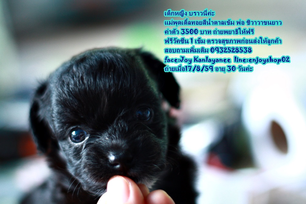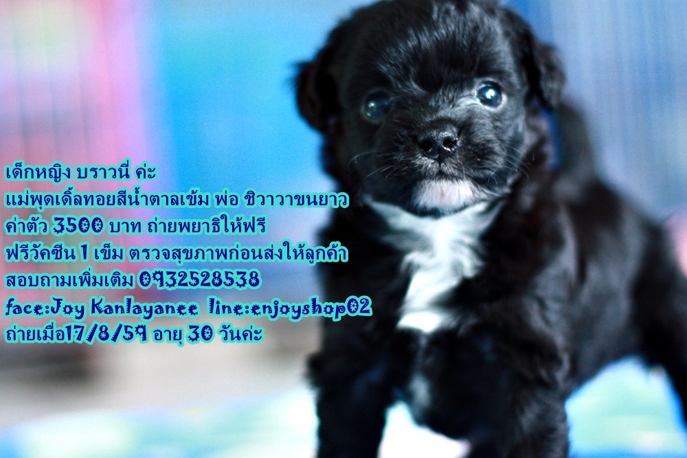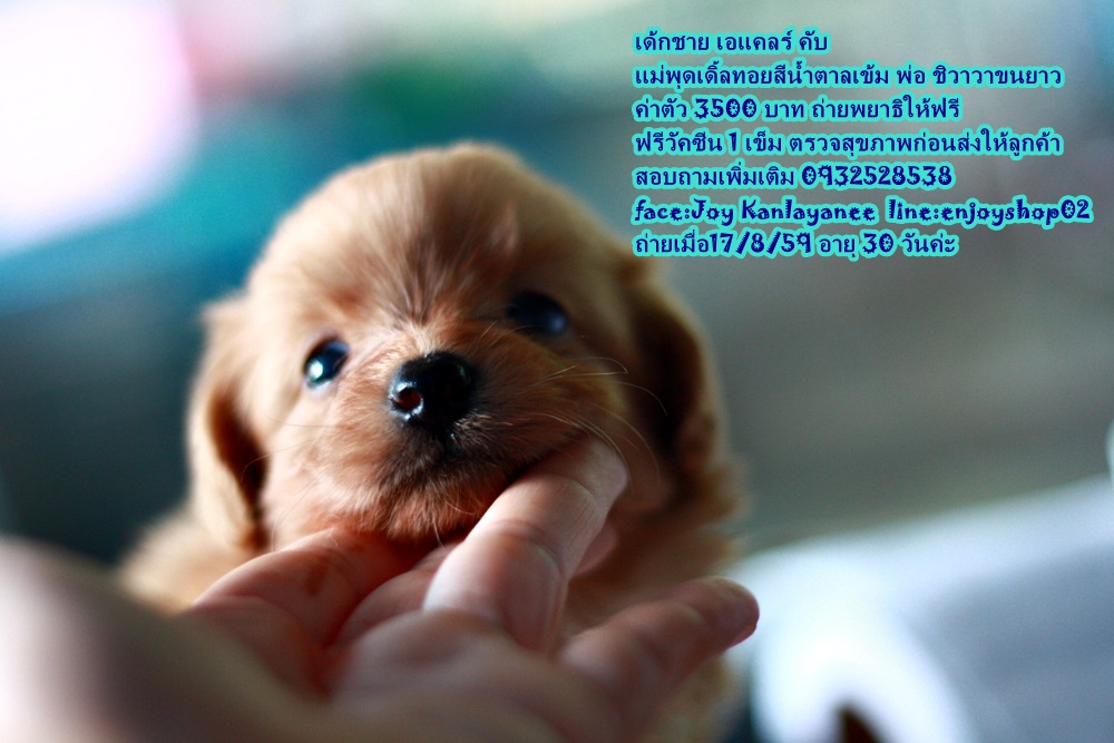เด็กชาย เอแคลร์ เด็กหญิงบราวนี่ เป็นลูกผสมระหว่างพุดเดิ้ลทอยสีน้ำตาล กับ คุณพ่อ เฮง ๆ ชิวาวาขนยาว เกิดวันที่ 17 กค 59 วันนี้อายุได้ 36 วัน สุขภาพแข็งแรง อ้วนมาก กินเก่ง ร่าเริง เห่าและขู่ด้วยค่ะ จองได้นะค่ะ ขายในราคา 3500 บาท ราคานี้รวม วัคซีน และถ่ายพยาธิให้ค่ะ ตรวจสุขภาพจากคุณหมอก่อนส่งให้ลูกค้าค่ะ สอบถามเพิ่มเติม 0932528538 face : Joy kanlayanee line: enjoyshop02 page: ขายสุนัขและอุปกรณ์สุนัข สันป่าตอง เชียงใหม่ ค่ะ หรือเข้ามาดูน้องได้ที่ บ้านสวนน้องจอย อยู่บ้าน ศาลา สันป่าตอง เชียงใหม่ค่ะ