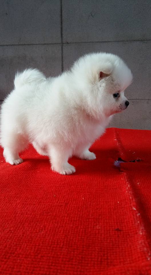 ขายลูกปอมหน้าหมีตัวผู้สีขาวครืม 1 ตัวครับลูกหมาที่บ้านเลิ้ยงเองครับ
