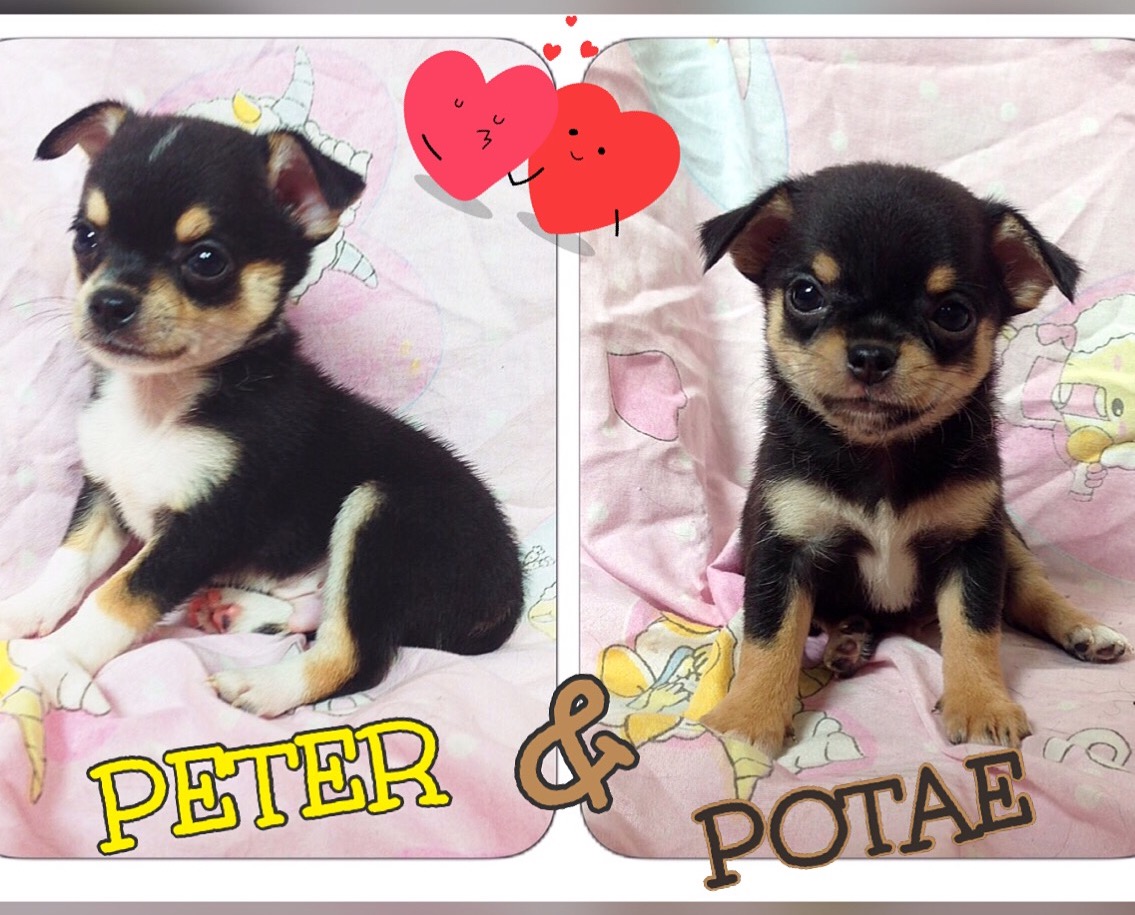 "ด.ช.ปีเตอร์ & ด.ช.โปเต้" หนุ่มหล่อแบลคแทนไซด์จิ๋ว ๆ (สินสอดน่ารักๆ 8000 บาท) มีใบเพดสมาคม สนใจทักแม่น้องมาได้นะคะ ☎️098-8358853 หรือ ID line : wowwhappy หรือ http://www.wowwchihuahua.com/ ค่ะ