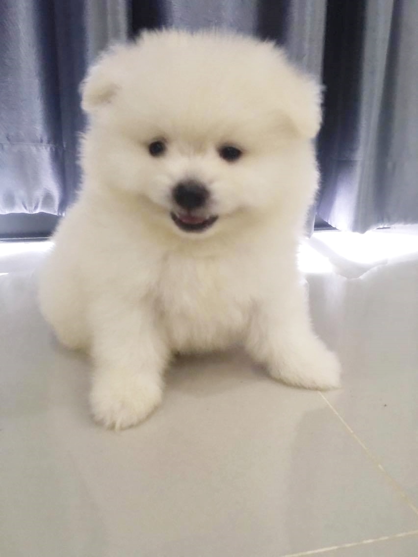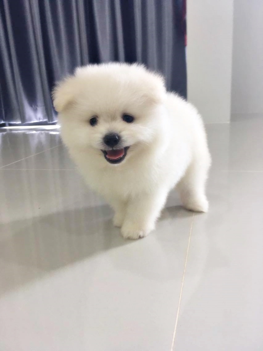 ปอมสีขาวเพศผู้ราคา 6000 บาท สนใจติดต่อ 0867309364 Line : chanok282
