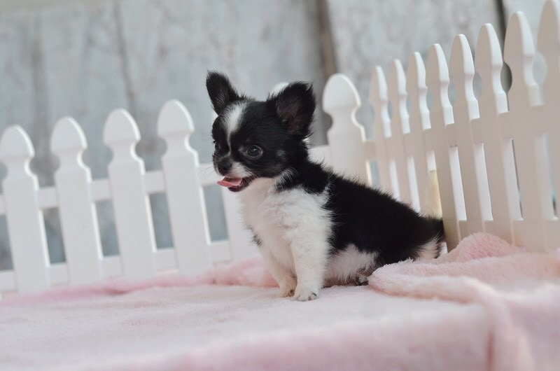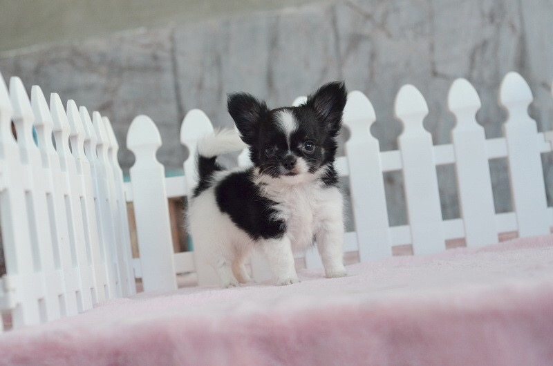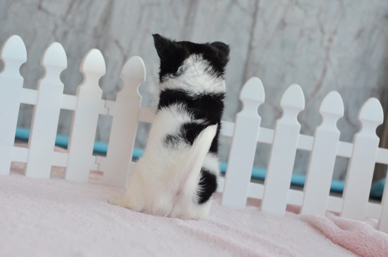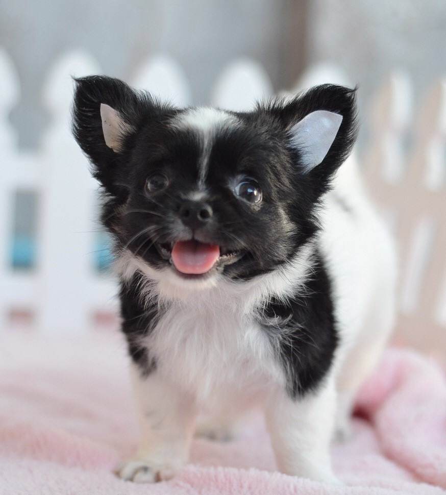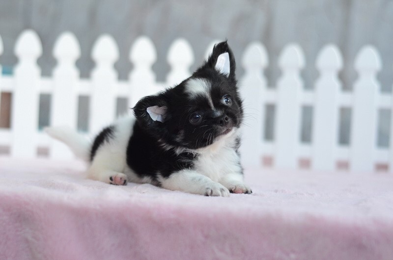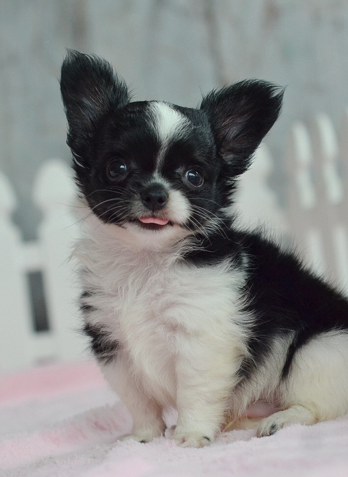5900-6900 .... 2 ชิวาวาเพศผู้ขนยาวสีขาวดำ หน้าสั้นขนแน่นสวย เพดสมาคมค่ะ