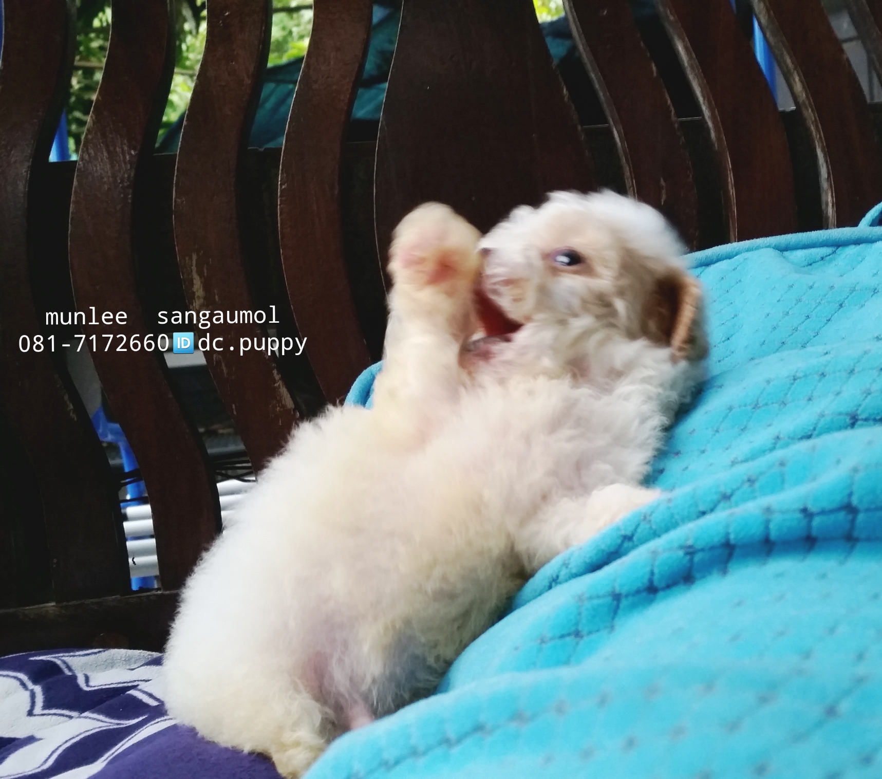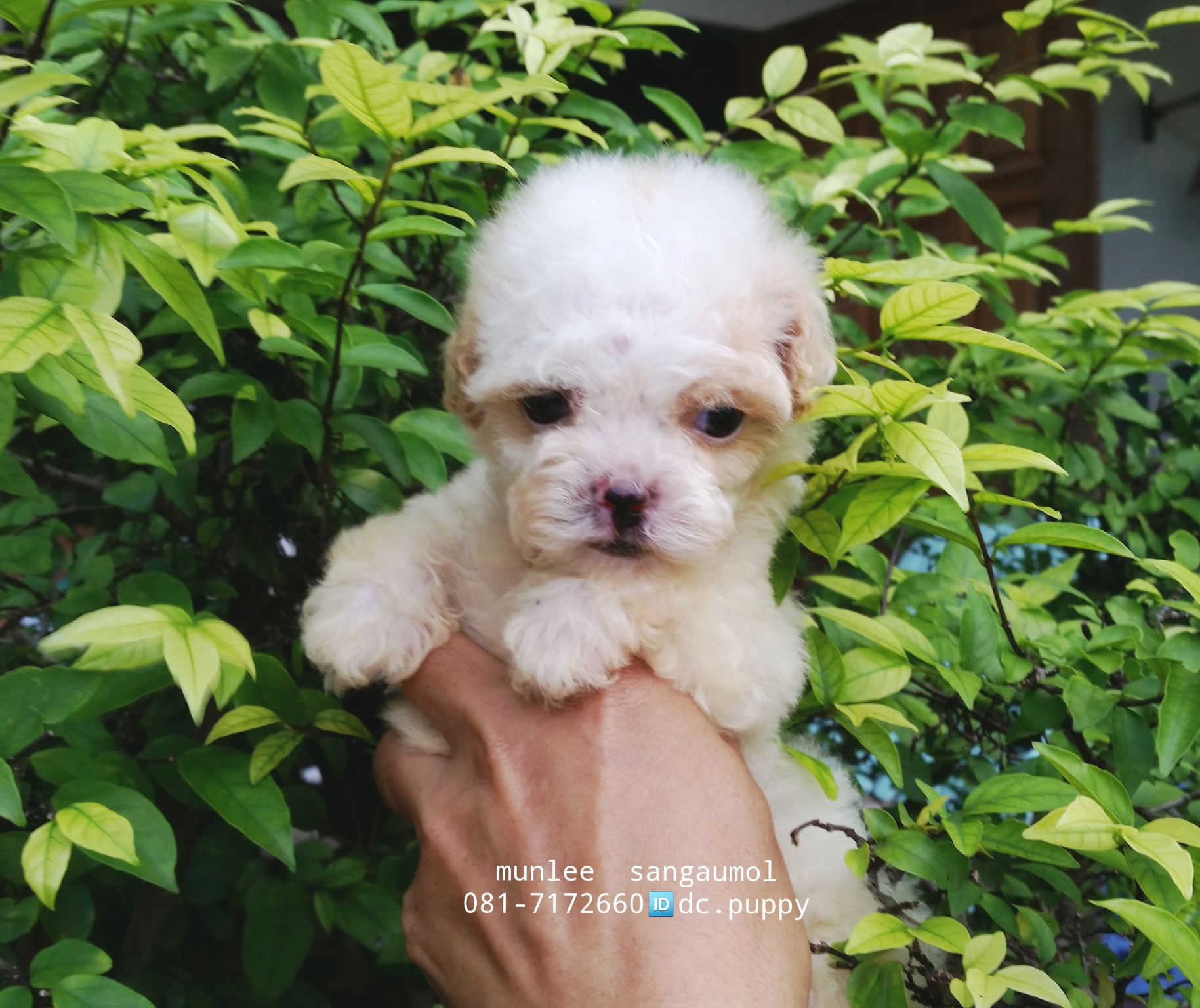 พุดเดิ้ลทอย สีขาว/น้ำตาล เพศผู้ ไซด์ดีสีสวย ขนแน่น หยิก