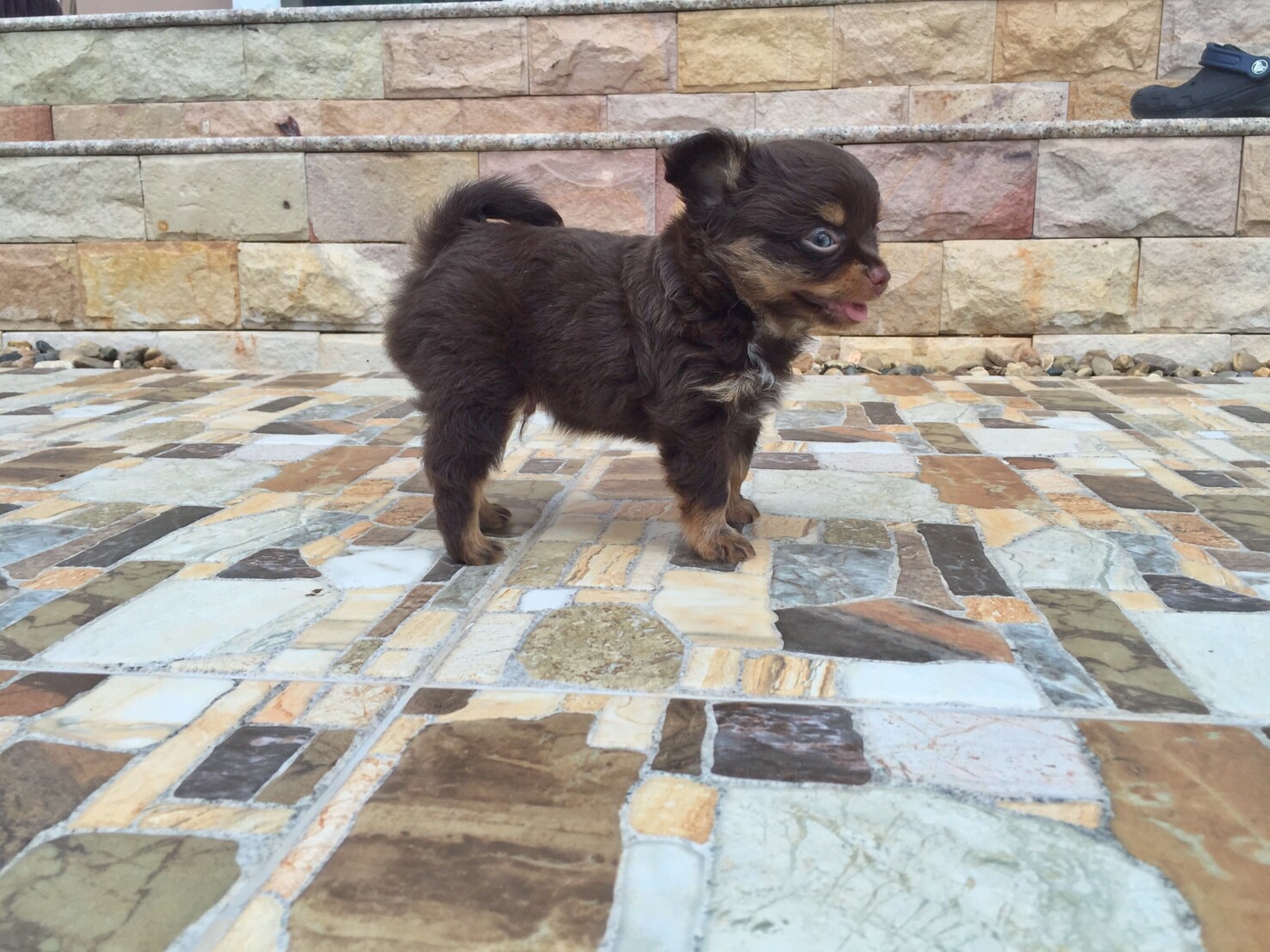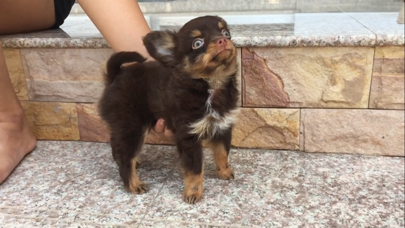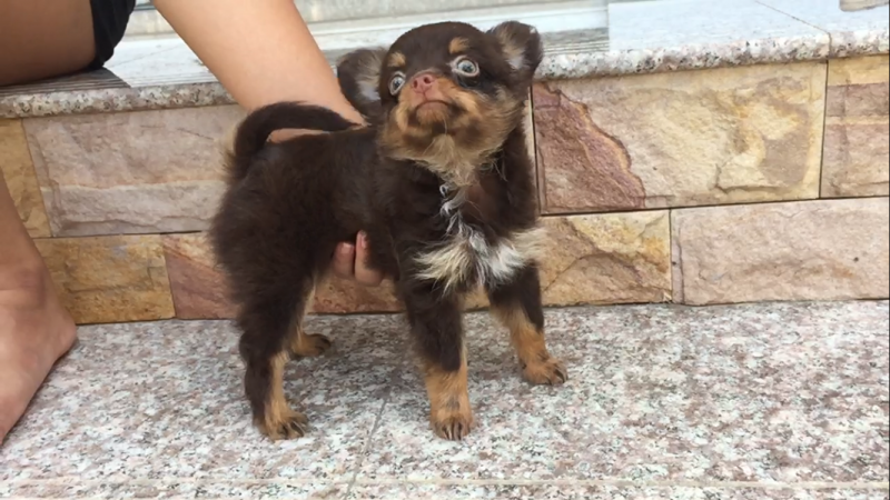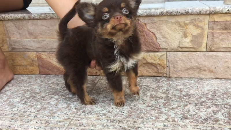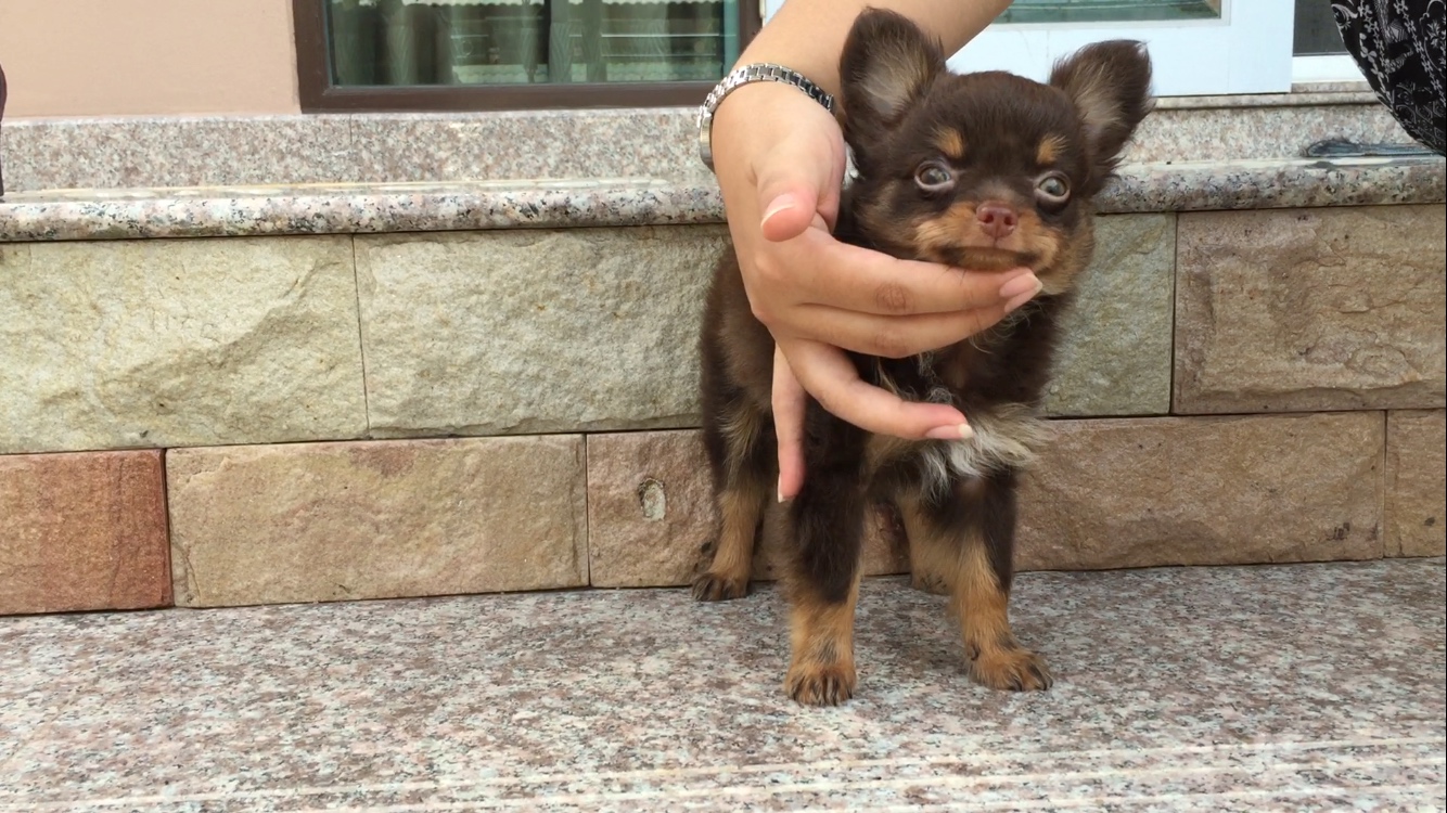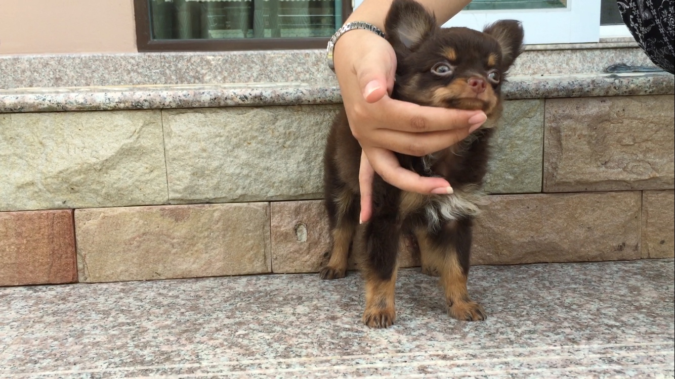 พร้อมย้ายบ้านชิวาวา เพศผู้ขนยาว สีช็อคโกแลต&แทน มาร์คสวย ใบเพ็ดดีกรีจากสมาคมเต็มใบ พ่อแม่สีช็อคโกแลต