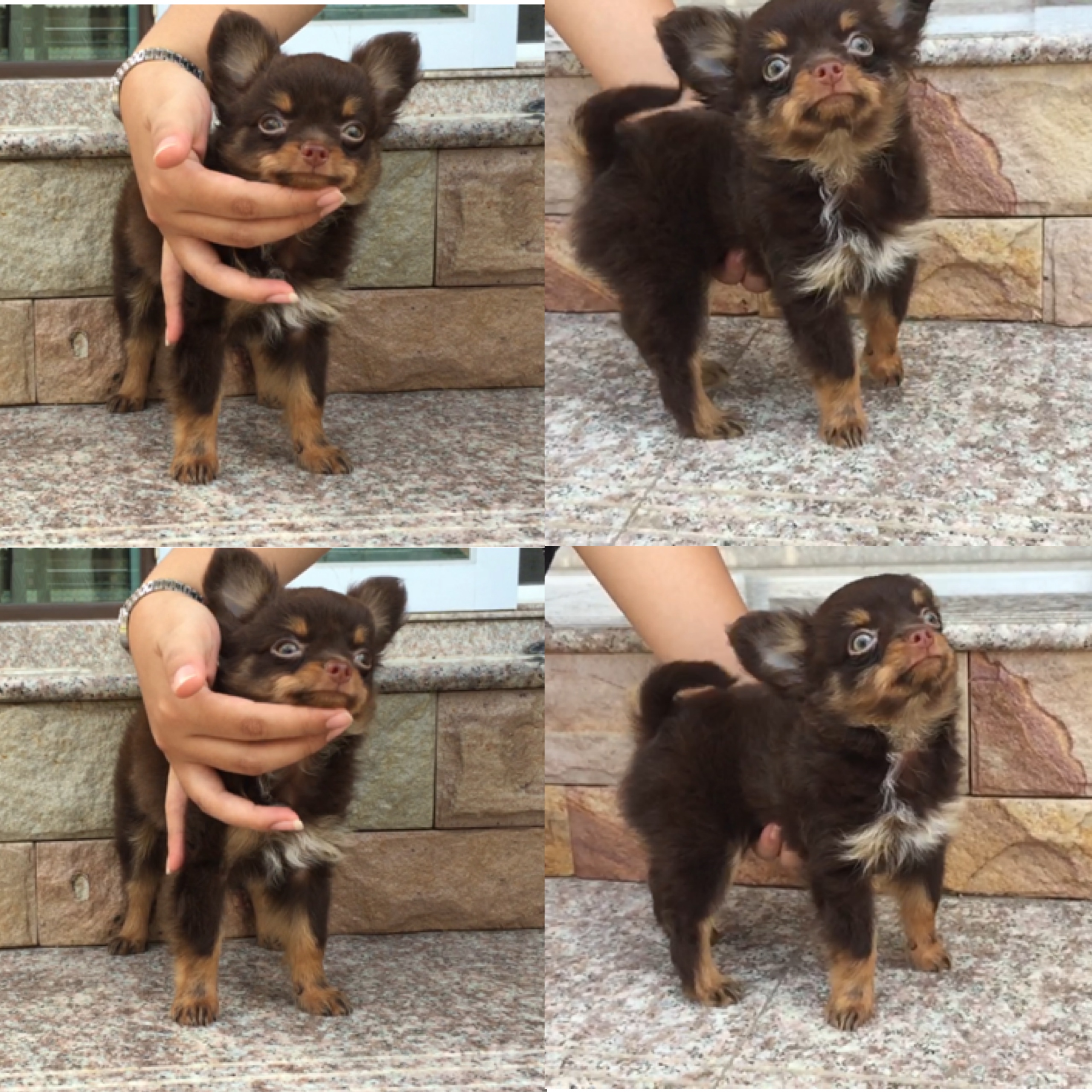 ชิวาวา เพศผู้ขนยาว สีช็อคโกแลต&แทน มาร์คสวย ใบเพ็ดดีกรีจากสมาคมเต็มใบ พ่อแม่สีช็อคโกแลตไซส์เล็ก สนใจดูรูปน้องเพิ่มเติมได้ในไลน์ id: wiwisana23 โทร 085-497-1956