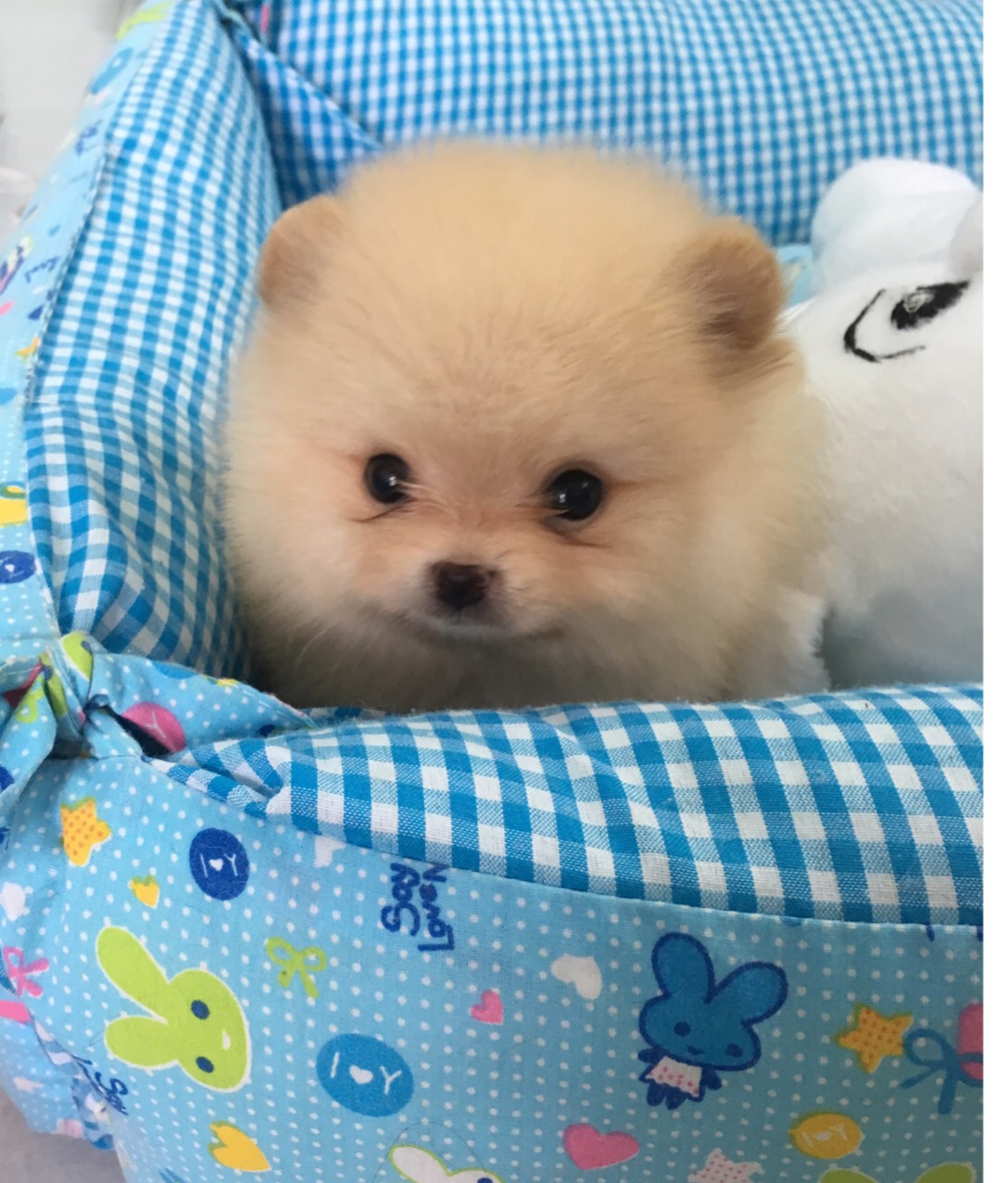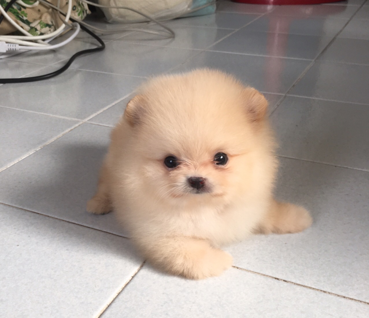 ขายปอมหน้าหมี สีครีม เพศผู้ ไซต์เล็ก ฟรอมสวย ราคาเบาๆพร้อมใบเพ็ตดีกรี