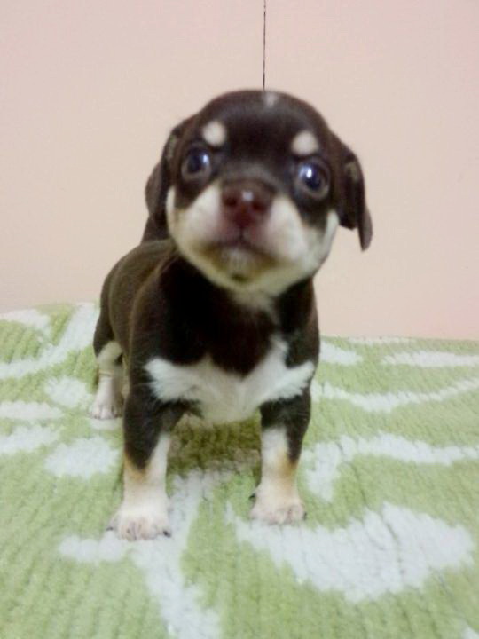 ชิวาวา เพศผู้ขนสั้นสีชอคโกแลต & ครีม มาร์กกิ้งสวย สายสีชอคแน่น น่ารักมาก ราคา 9500 บาท เปิดจองค่ะ