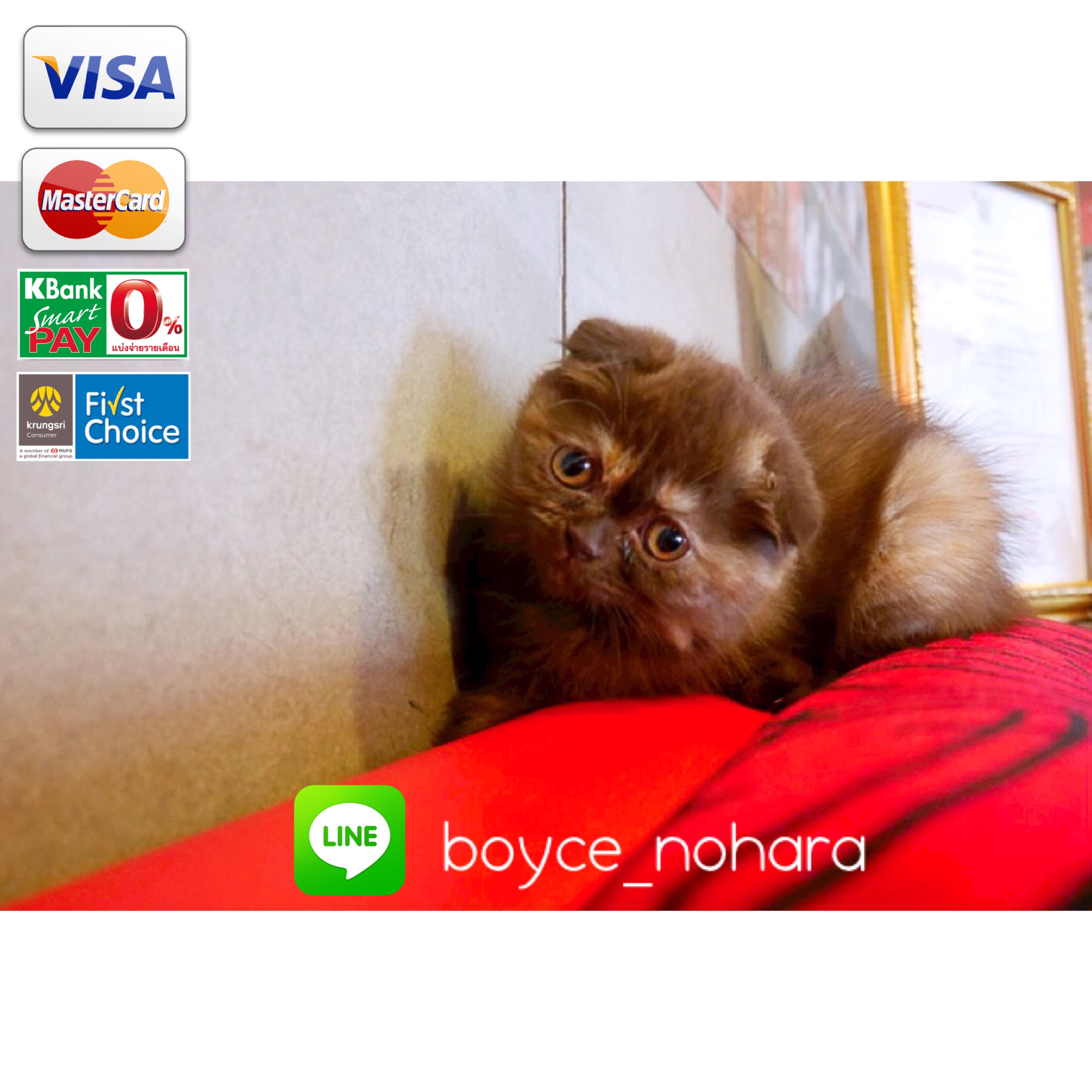 -ถ้าจำเป็นต้องใช้วิธีการจัดส่ง โปรดขอเปิด Vdo Call ทาง Line หรือ Facebook เพื่อยืนยันว่ามี สุนัข/แมว อยู่จริง ก่อนโอนเงินไปนะครับ