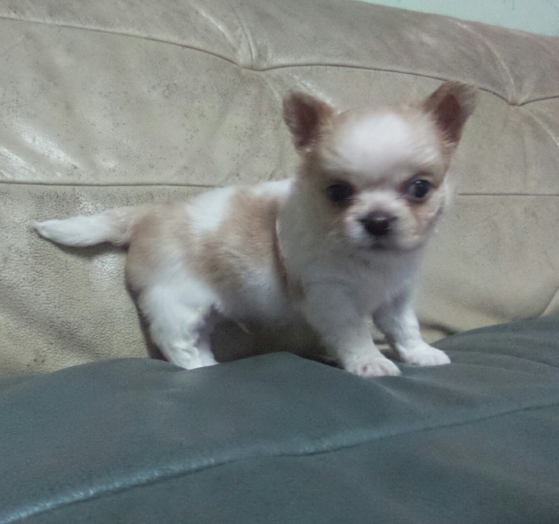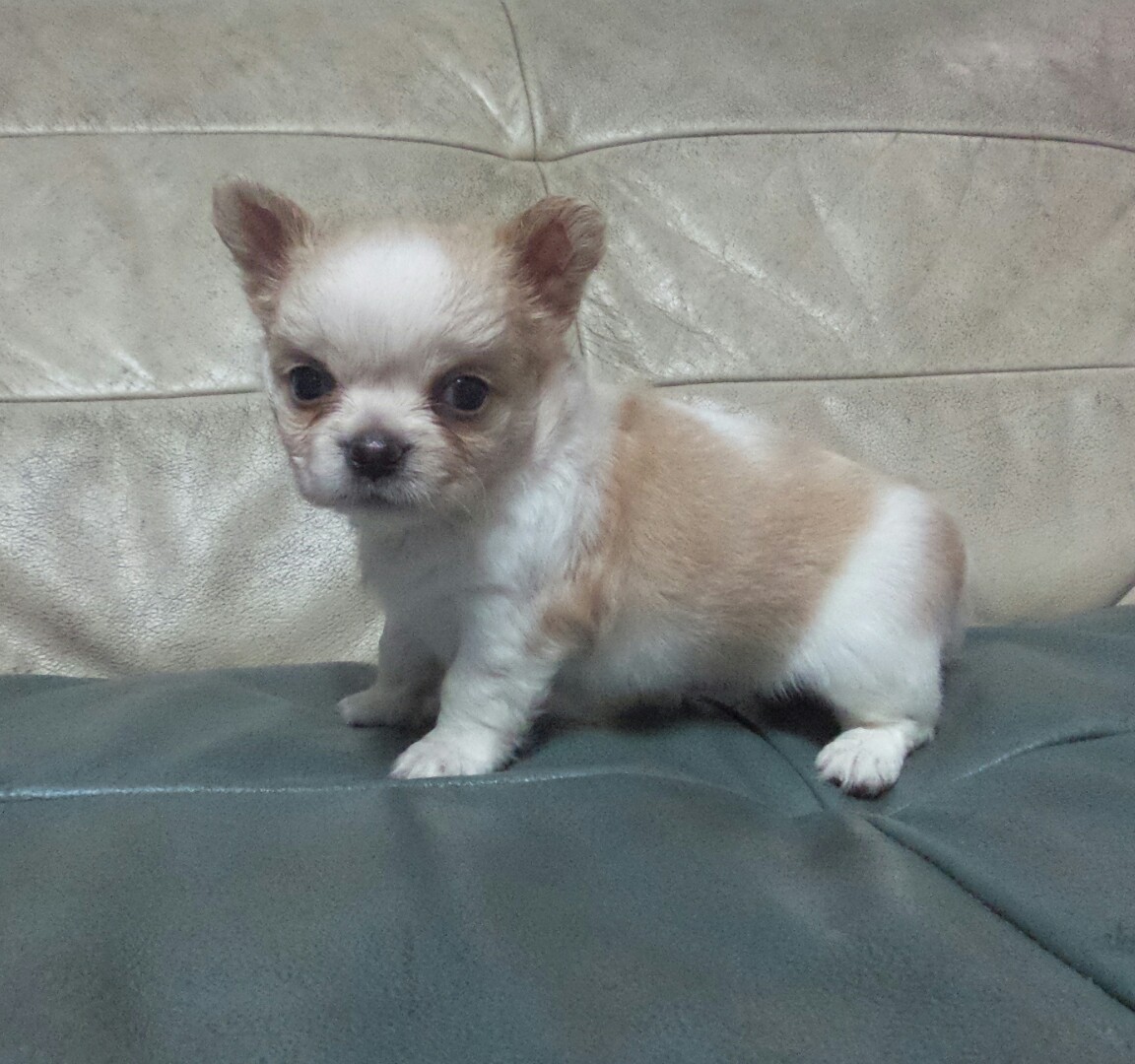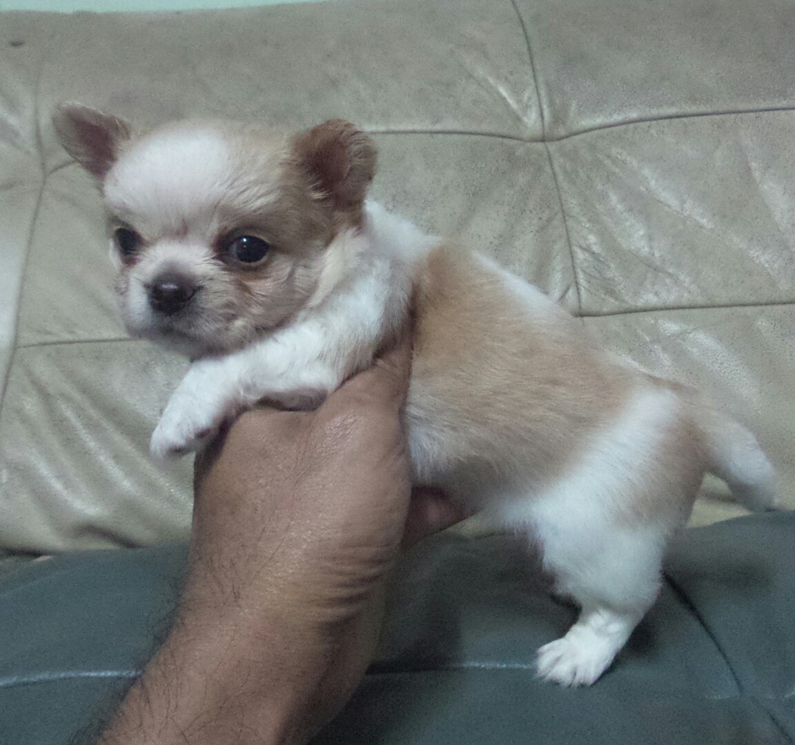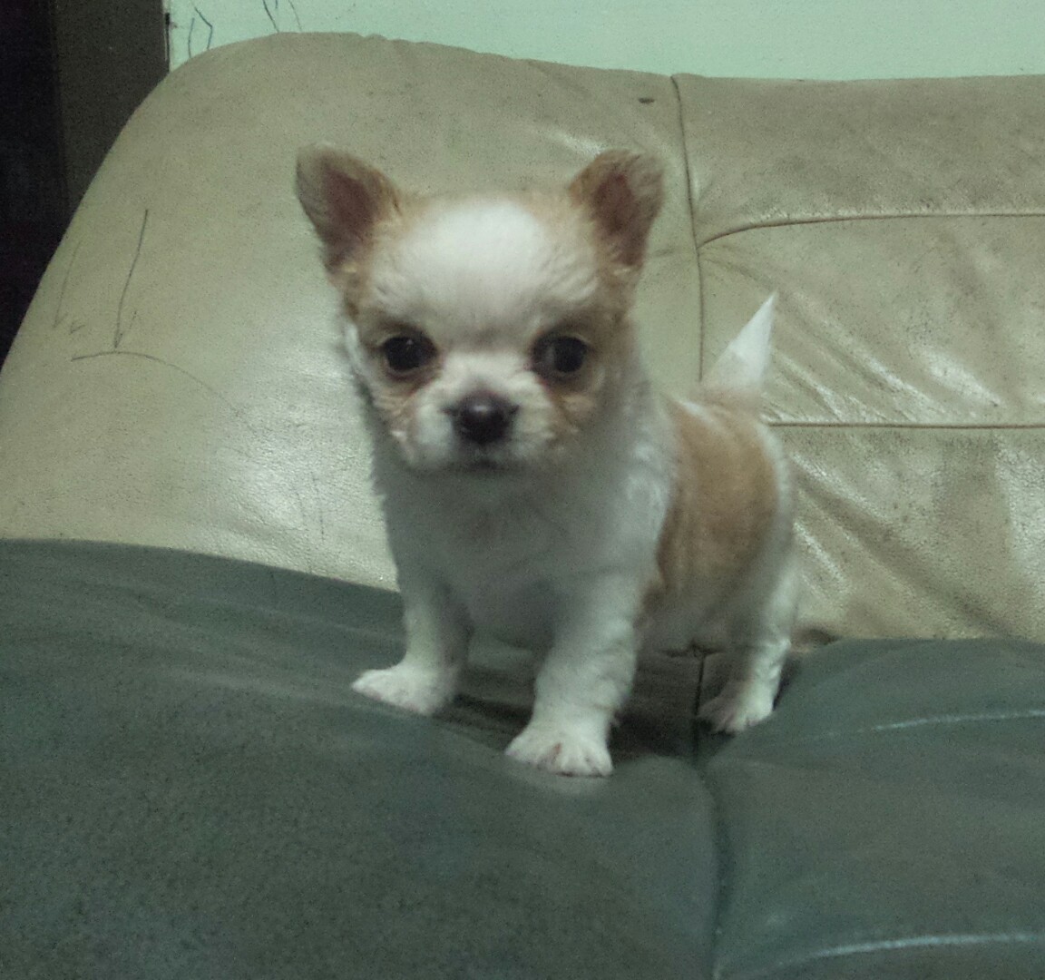 ชิวาว่าขนยาวเพศผู้สีขาวครีม หน้าสั้นตัวเตี้ยๆล่ำๆ อายุเดือนครึ่ง ถ่ายพยาธิและวัคซีนรวมแล้ว น้องแข็งแรงร่าเริง รับประกันสุขภาพ น้องพร้อมย้ายบ้านแล้วครับ ใกล้เคียงส่งฟรีถึงมือ