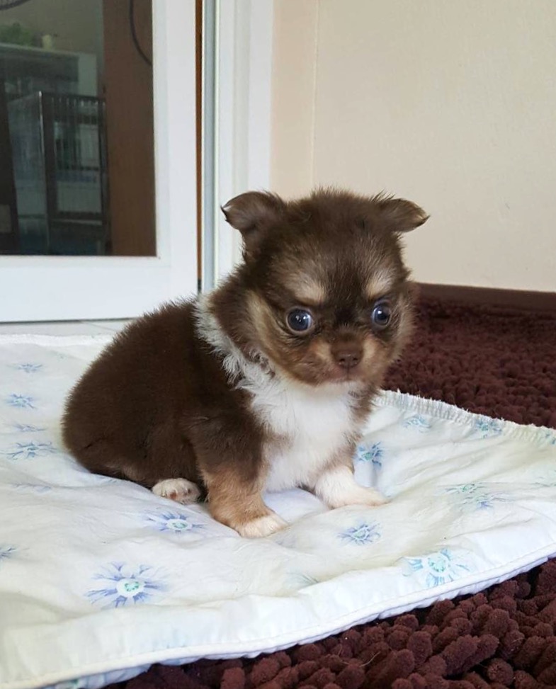 น้องพิซซ่า ชิวาวาเพศผู้สีชอคแทน หน้าสั้นน่ารัก เพดสมาคม