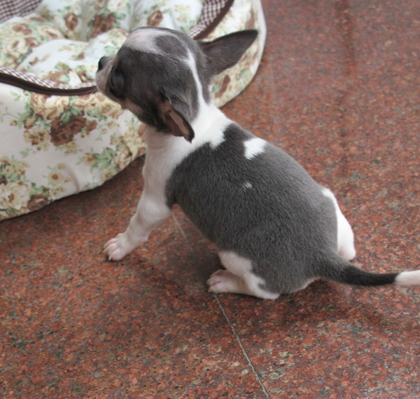 ชิวาวาเพศเมียขนสั้นสีขาวเทาสุดน่ารัก หัวกลมหน้าสวยมาก มาร์กสวย ขนแน่น สีสวยมาก สินสอด 8500 บาท