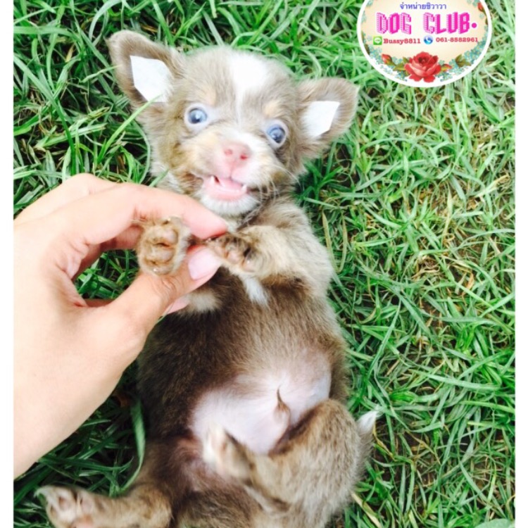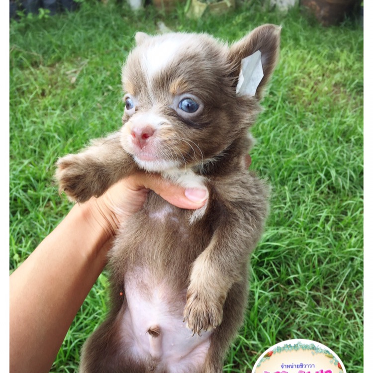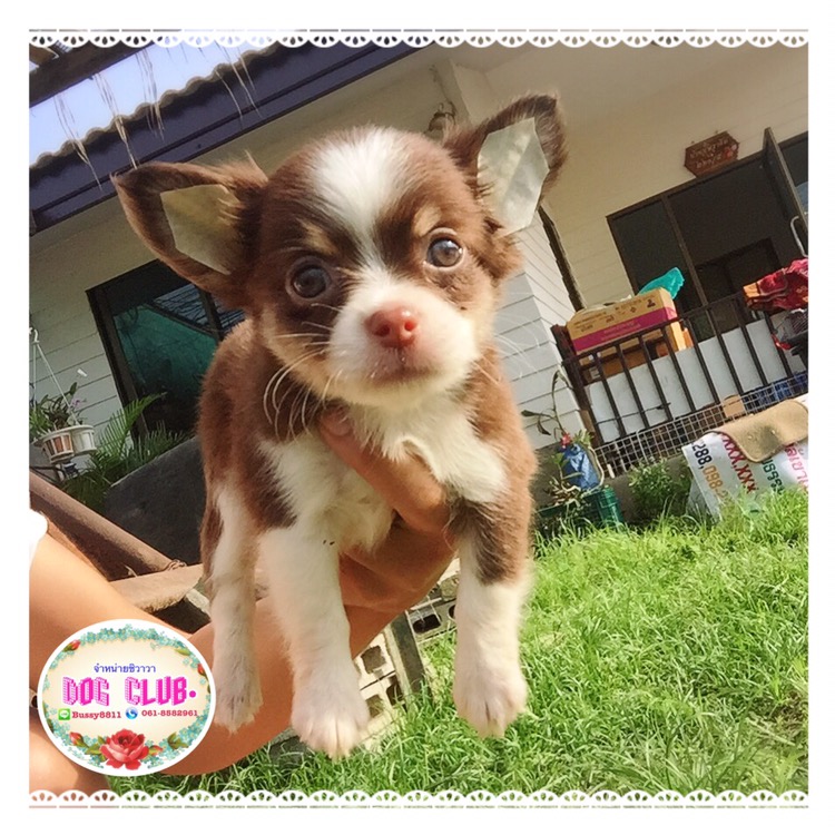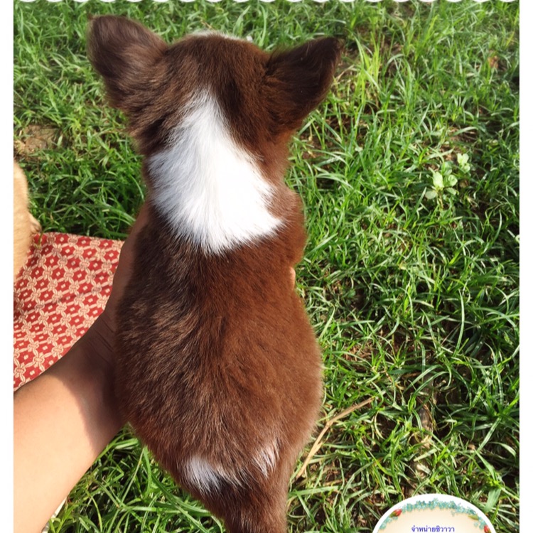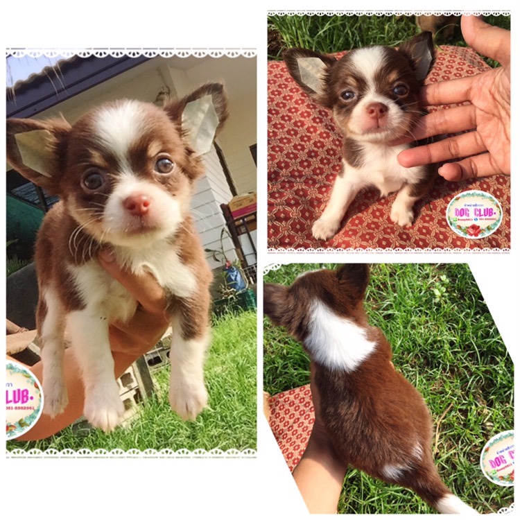 ชิวาวา สีชอคโกแลต แผงคอขาว ถุงเท้า4 หางดอก 📲Line:Bussy8811 ☎️0618582961