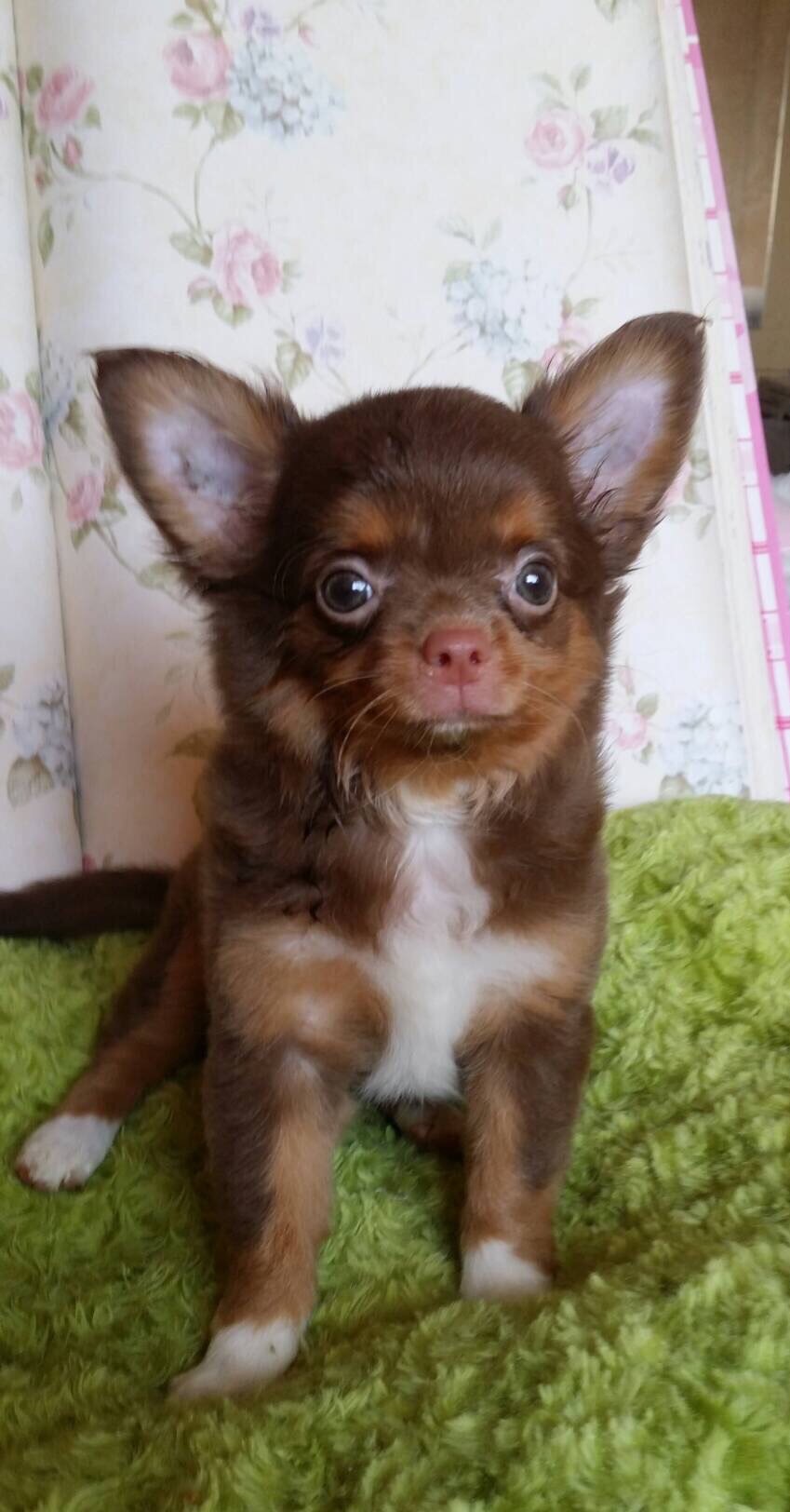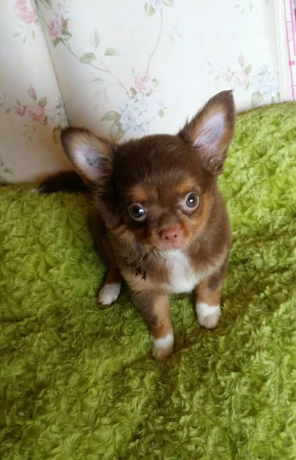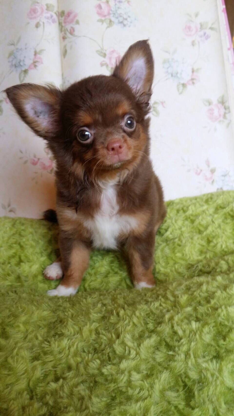 ชิวาวาขนยาว เพศหญิงสีช็อคแทนมีใบเพ็ด
