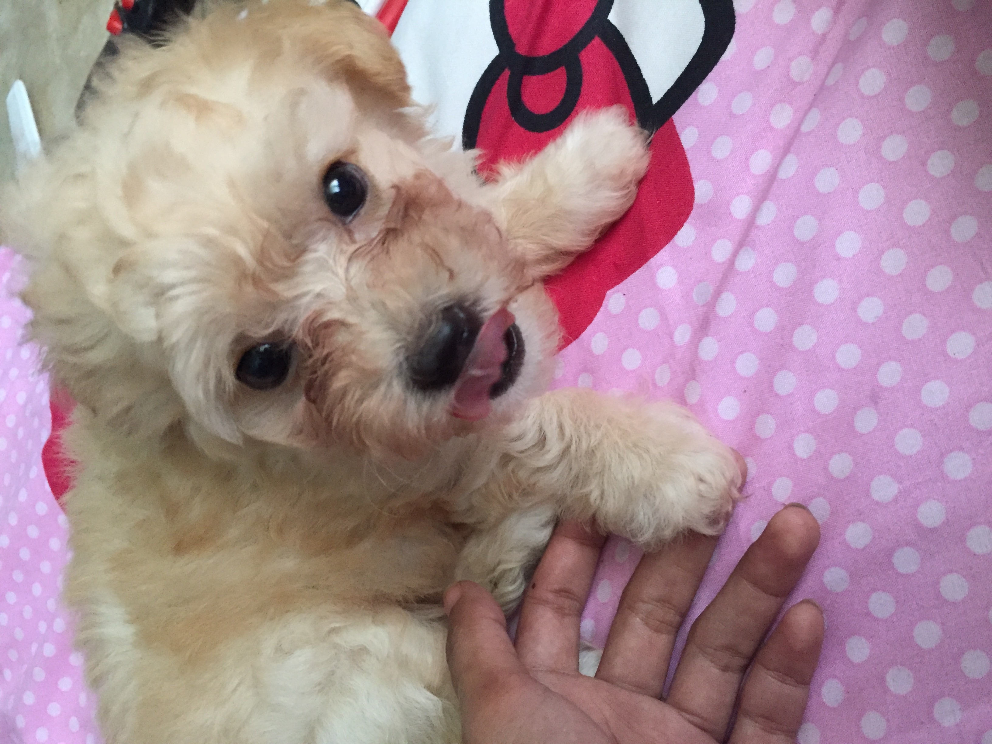 พุดเดิ้ลทอย เพศผู้ ตัวเล็ก ขาสั้น ขนหยิกๆ กำลังซน อายุ 1 เดือนครึ่ง พร้อมย้ายบ้านแล้ว สนใจทักมาไอดี aum_js โทร 0927322011