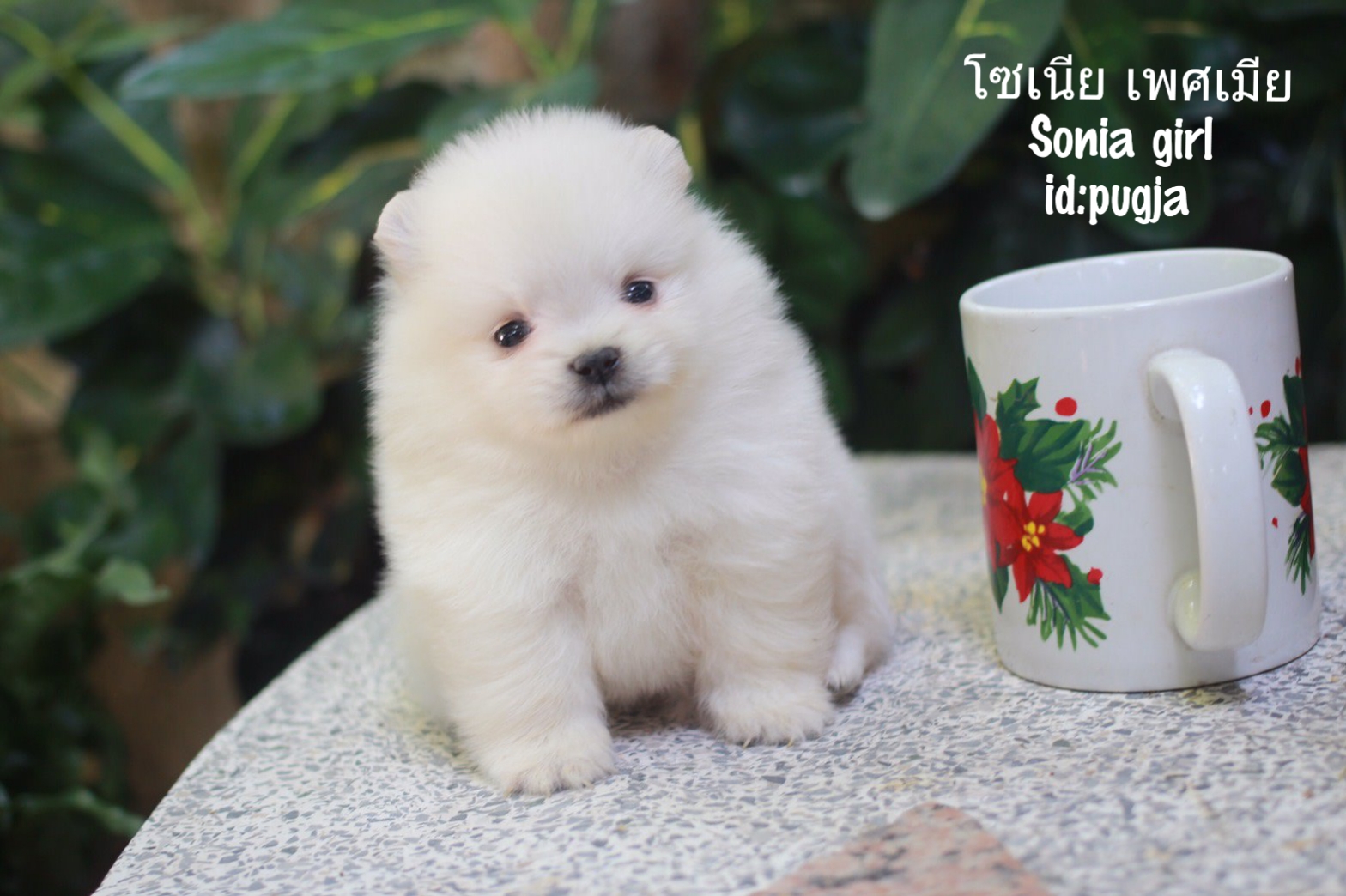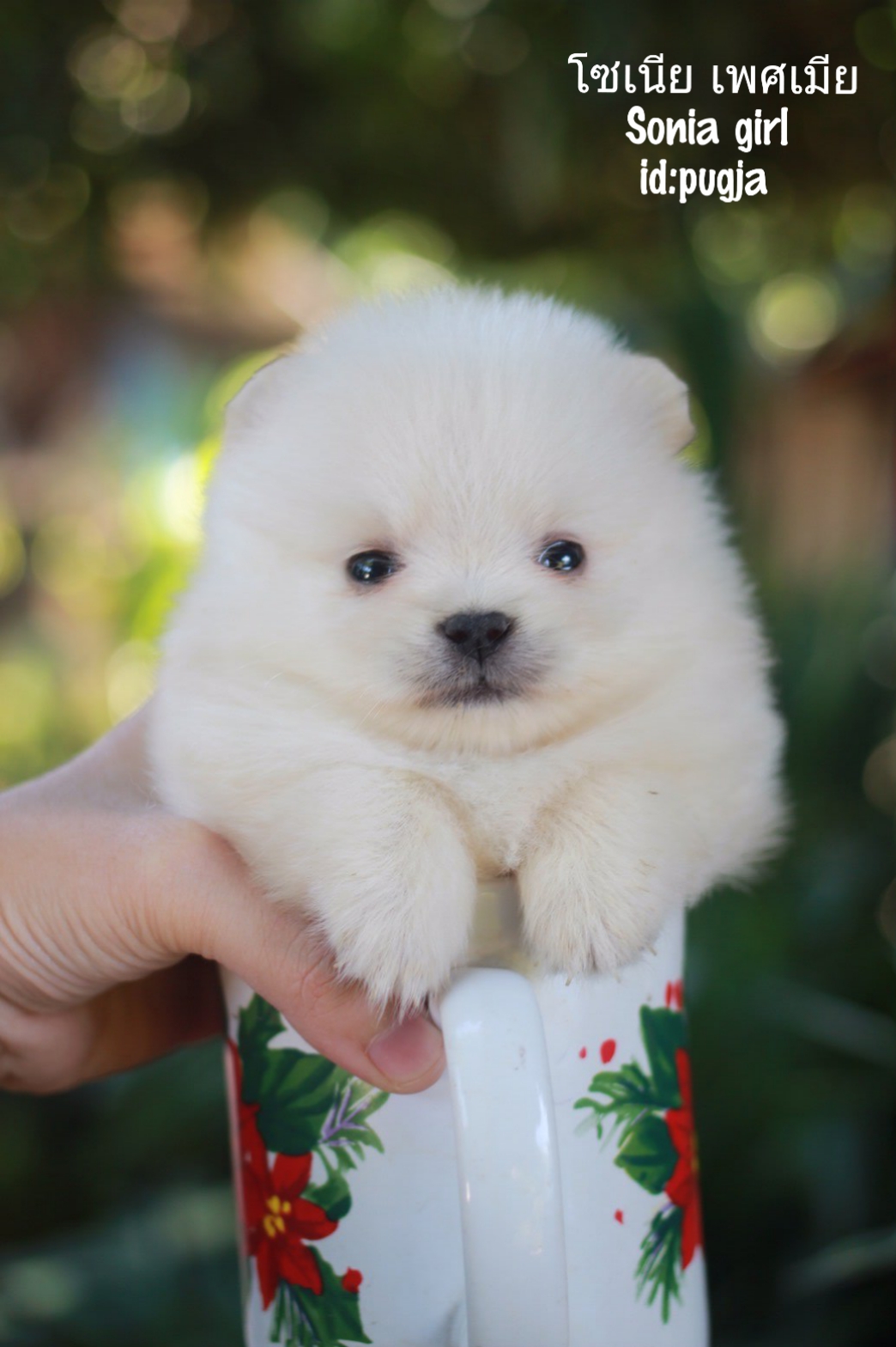 ปอมเมอเรเนี่ยนสีขาวเพศเมีย หมีหมีแบ๊วมาก ไซส์ทีคัพ
