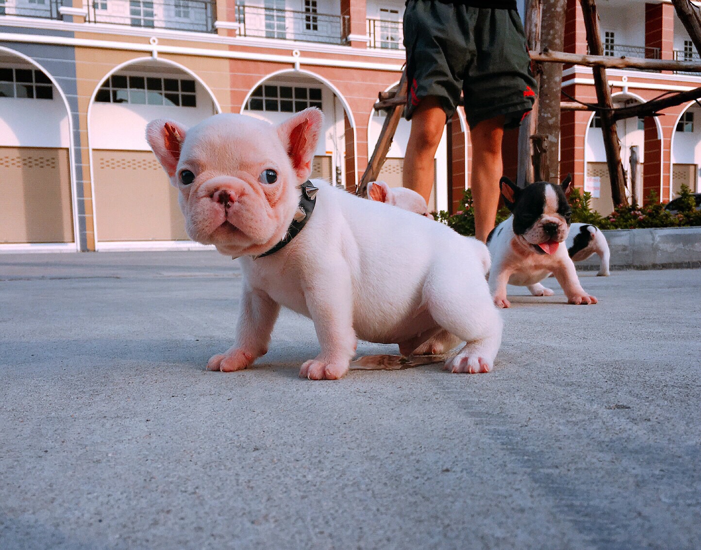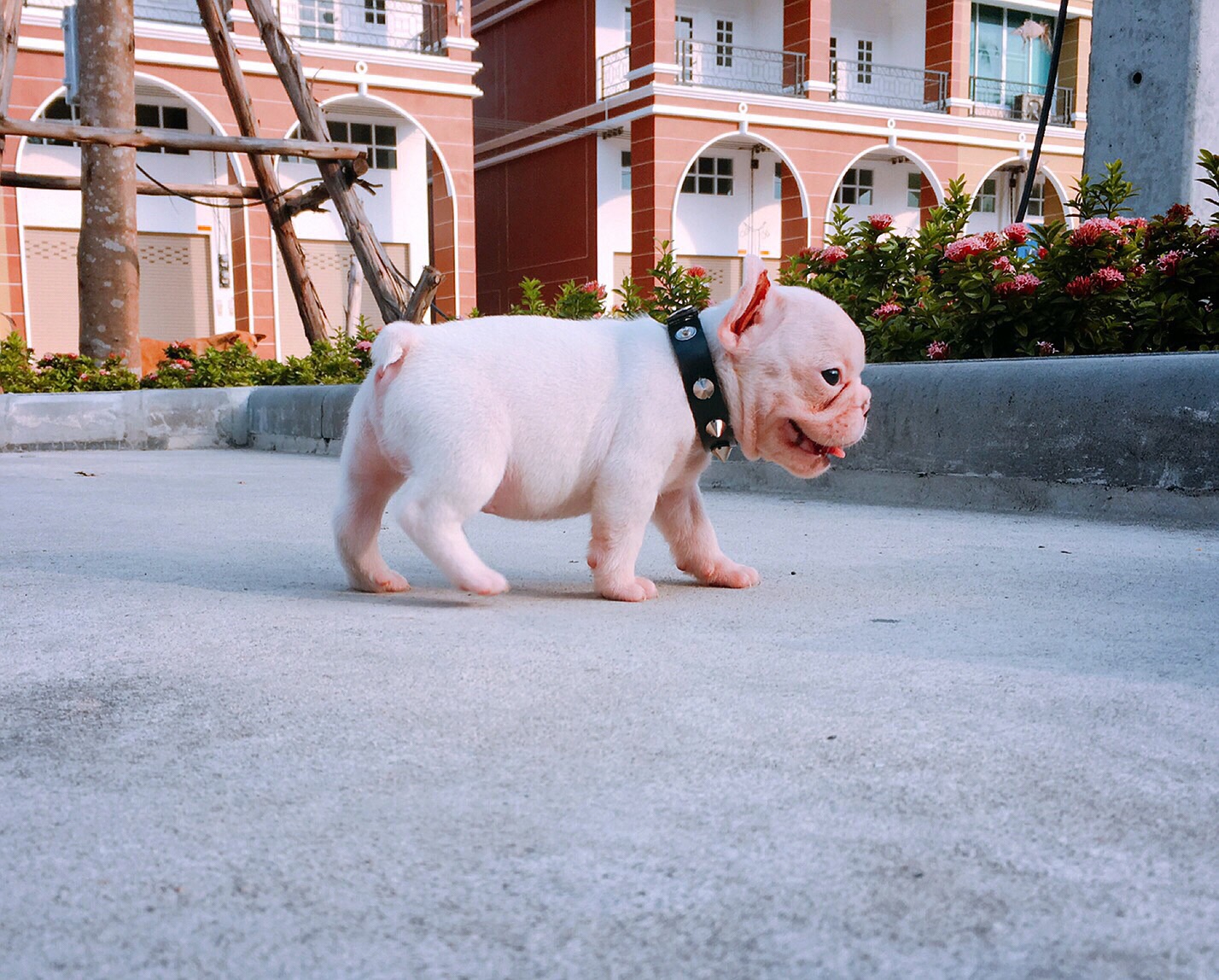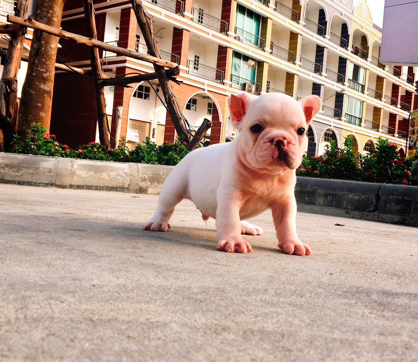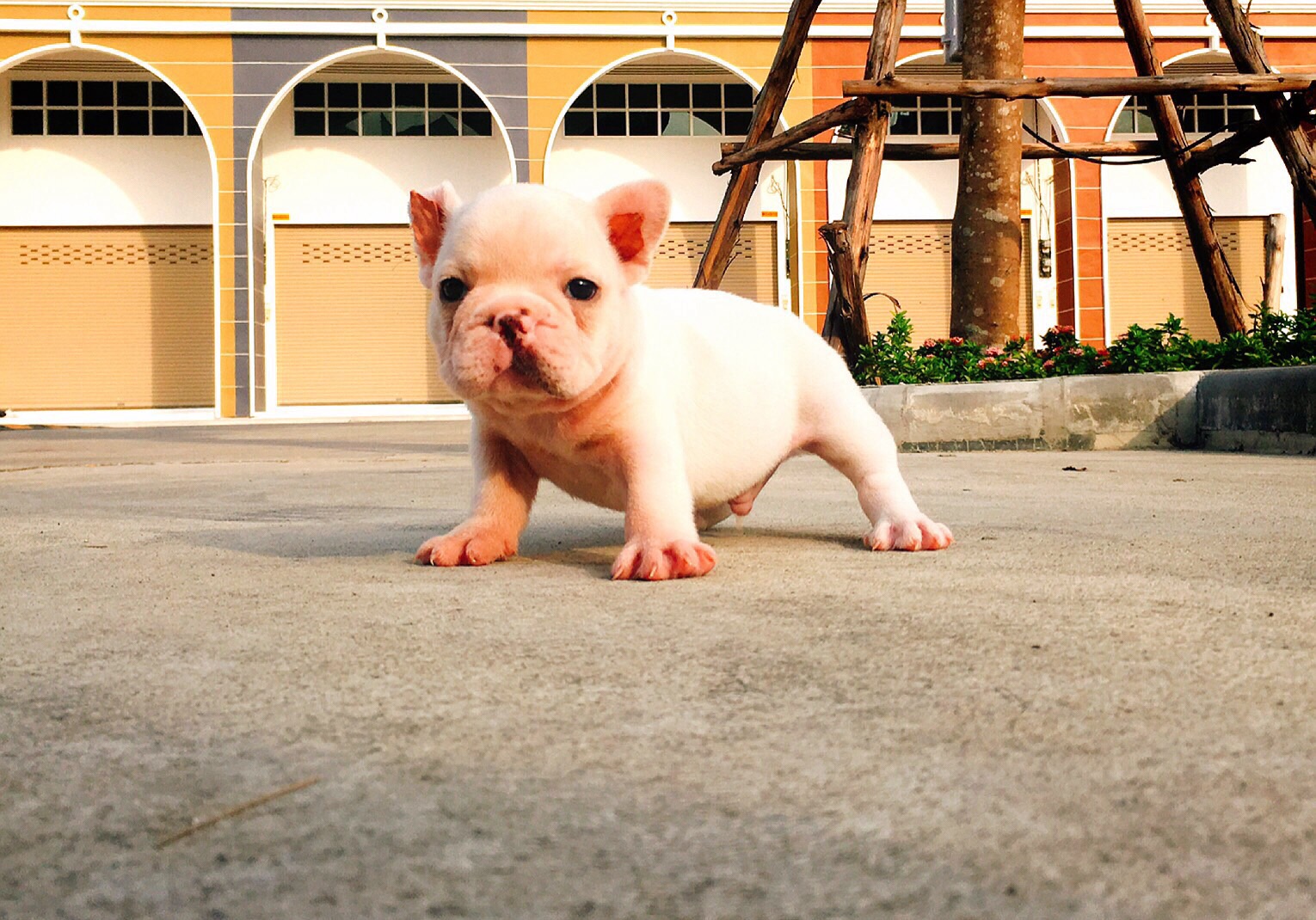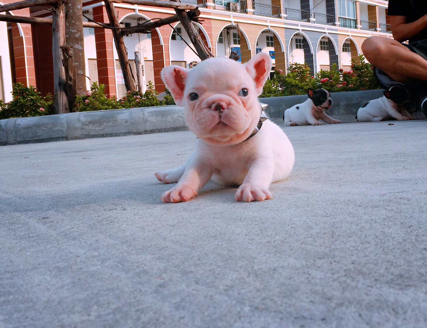 frenchbulldog เพศผู้สีขาวล้วน หัวโต ตัวสั้นสวย ราคา18,000บาท มีใบเพ็ด