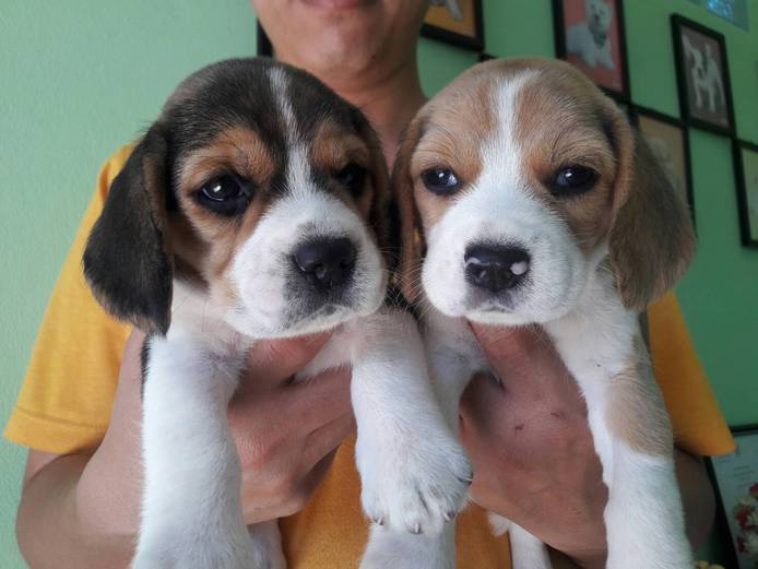 ขายลูกบีเกิ้ลแท้3สี คุณภาพเกรดA หุ่นหนาล่ำ หูยาว กระบอกปากใหญ่ เป็นเพศเมียทั้ง 2 ตัว