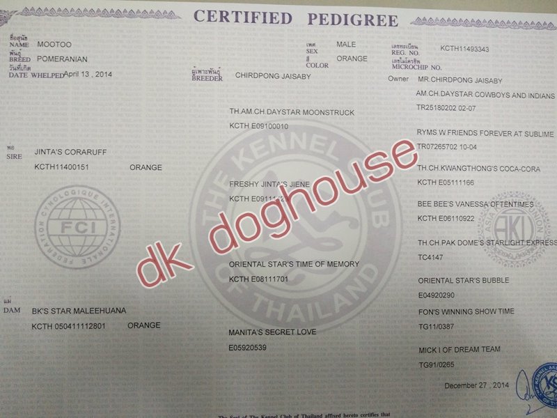 ปอมหนุ่มพ่อพันธุ์สุดหล่อ ดูดี มีชาติตระกูล (ใบเพ็ด) แบ่งขาย อายุ 2 ปี เกิด 13 เมษา 2014