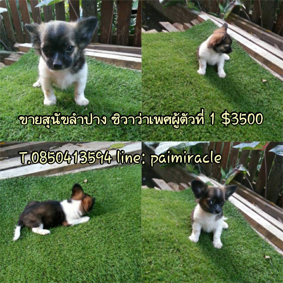 ชิวาว่าเพศผู้ขนยาวจ๊ะ สุดน่ารักแข็งแรงพร้อมย้ายบ้าน เกิด 22 กันยายน 59 พร้อมถ่ายพยาธิและฉีดวัคซีนรวม ขี้เล่นน่ารักแข็งแรง ทานอาหารเองได้แล้วนะค่ะ พร้อมย้ายบ้านจ๊ะลูกค้าที่อยู่ลำปางหรือจังหวัดใกล้เคียงมาดูเด็กๆได้ที่บ้านข้างเซนทรัลลำปางทางเรามีบริการจัดส่งและส่งทางเครื่องบินด้วยจ้า