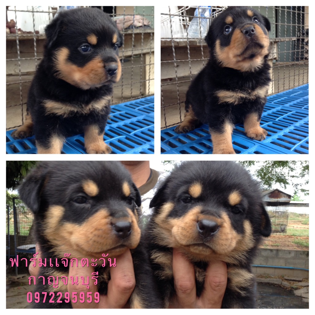 สนใจร๊อกไวเลอร์เลือด100 หัวใหญ่หน้าสั้นอ้วนจ้ำหม่ำเพศผู้2ตัวอายุ36วัน สนใจเบอร์0972295959ตะวัน ฟาร์มอยู่ที่บ่อพลอยกาญจนบุรี พ่อมีใบเพ็ดเกรดเอ