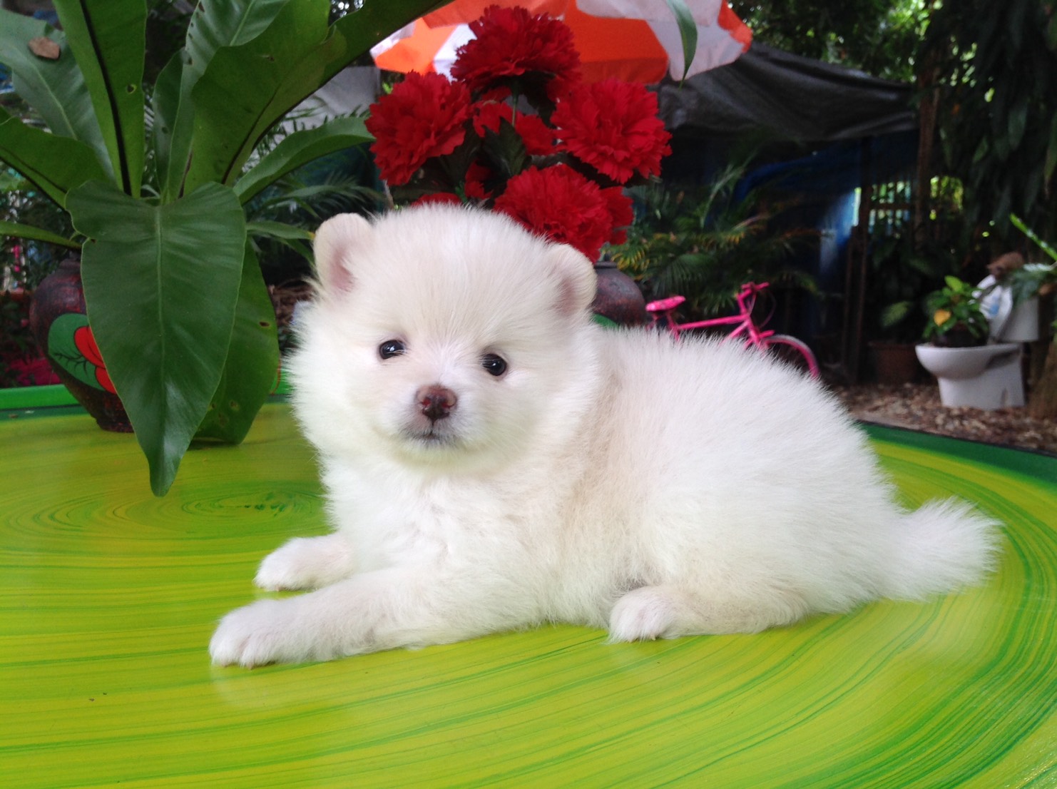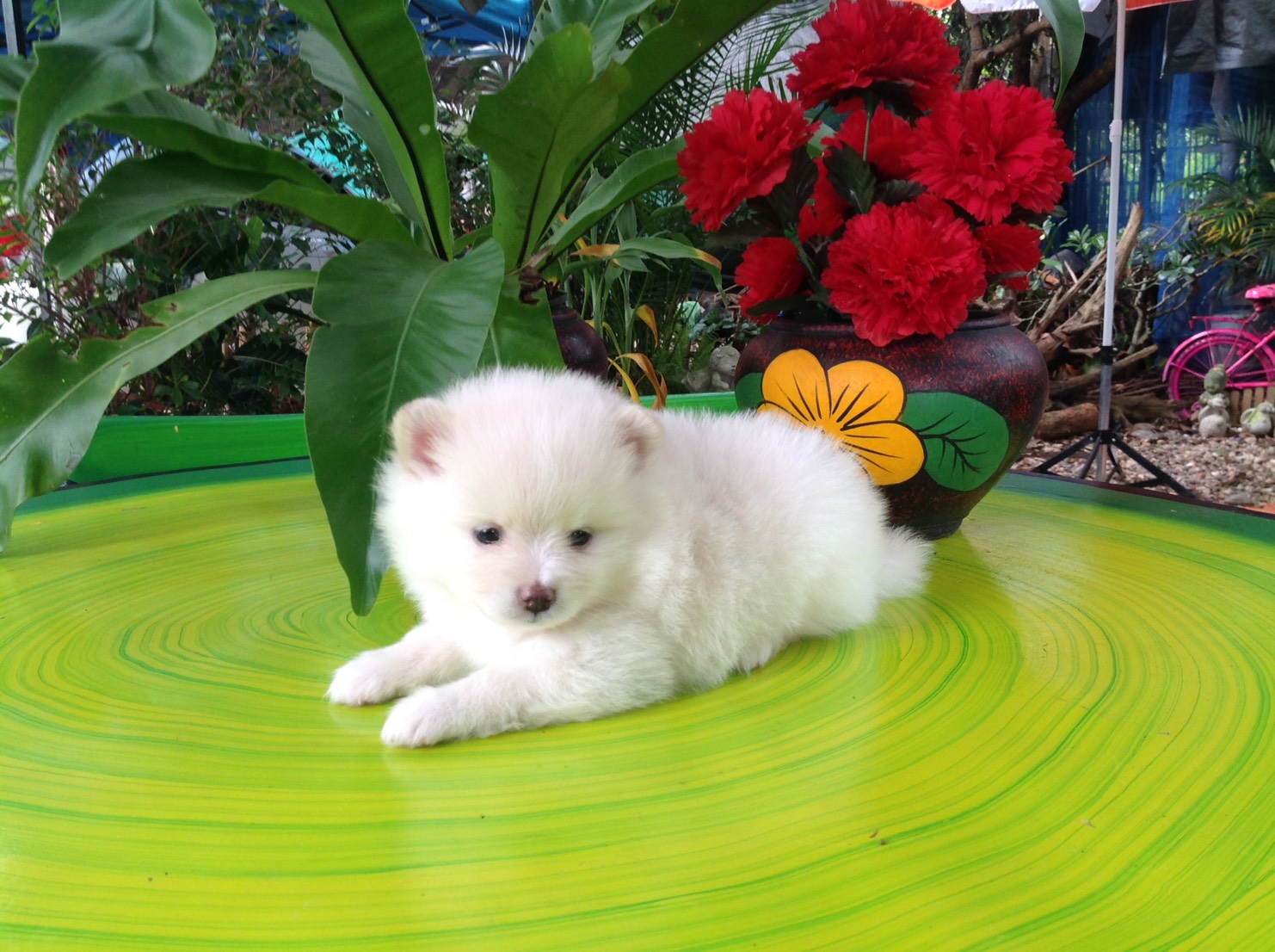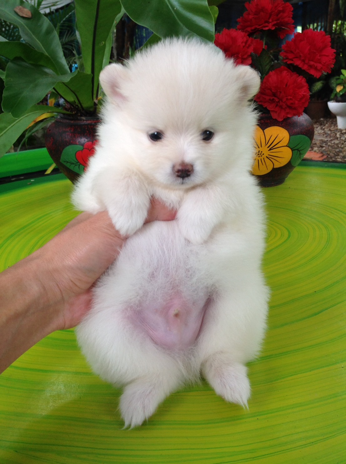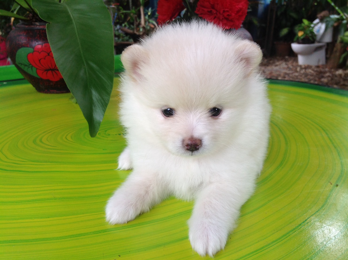 ลูกสุนัขปอมเมอเรเนียน สีขาว ขนปุยๆ น่ารัก เพศผู้