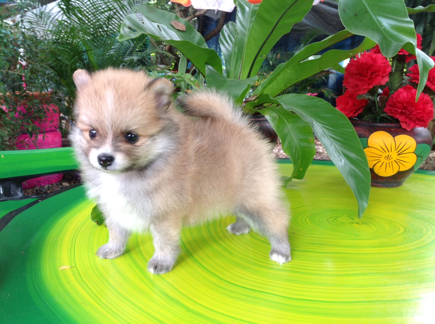 ลูกสุนัขปอมเมอเรเนียน สีครีมส้ม มีลายมาร์กขาว เพศผู้