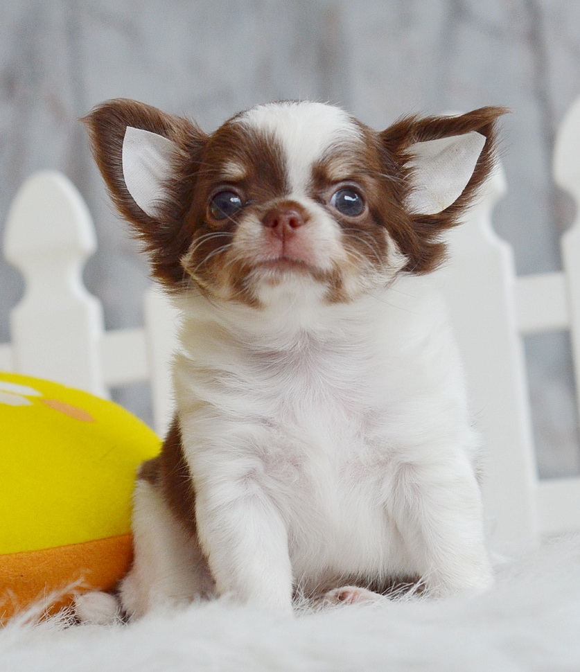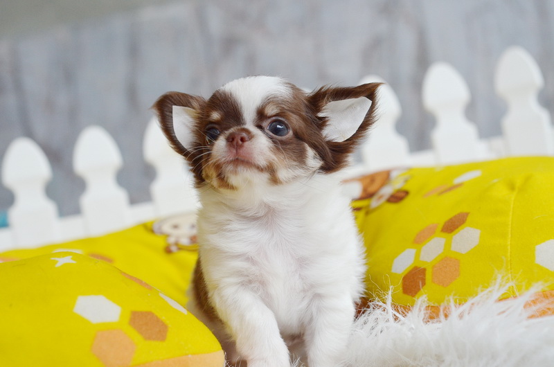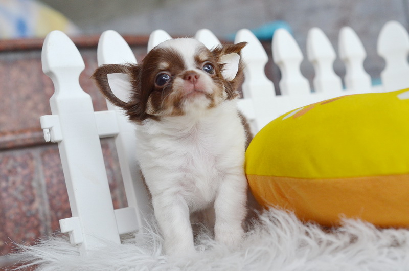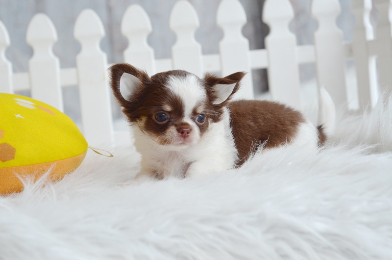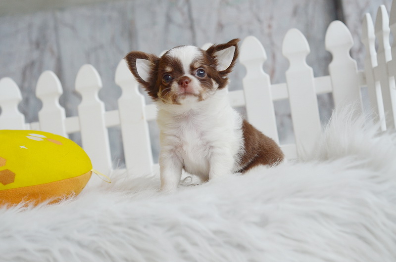 น้องลูกพีช ชิวาวาเพศเมีย ขนยาว สีขาวชอคโกแลต 13500