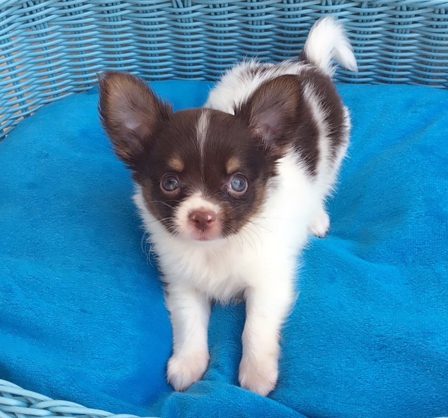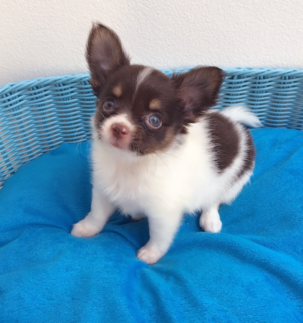 ชิวาวาขนยาวเพศผู้ สีขาวช็อค น่ารักขี้อ้อนมากๆ